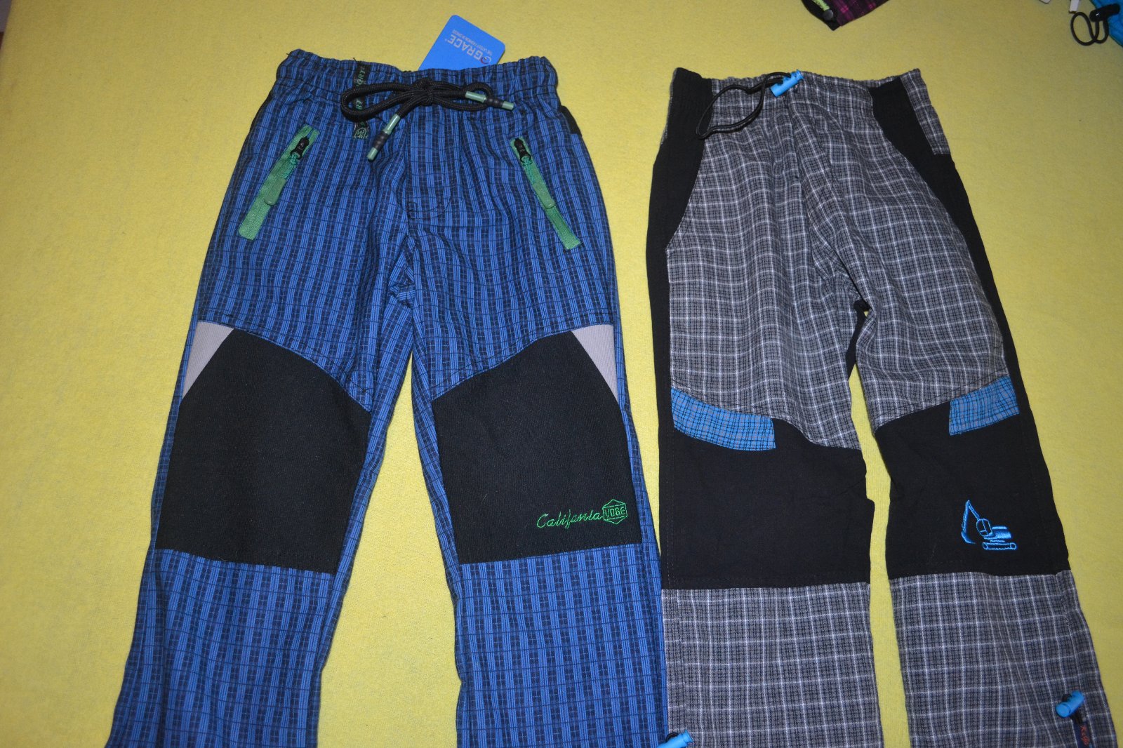 2x kvalitní nové sportovní jarní kalhoty bavlna,plátno, Kugo a Grace,v pase na stažení, kapsy,v.98,délka 59cm,cena celkem za oba kusy