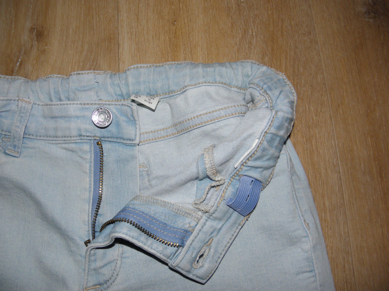 Prodám dívčí džíny / rifle zn. H&M vel.152. Málo nošeny, na nohavici flíček - téměř neviditelný. Jinak v pořádku. Přední kapsy falešné, zadní funkční, regulace v pase.