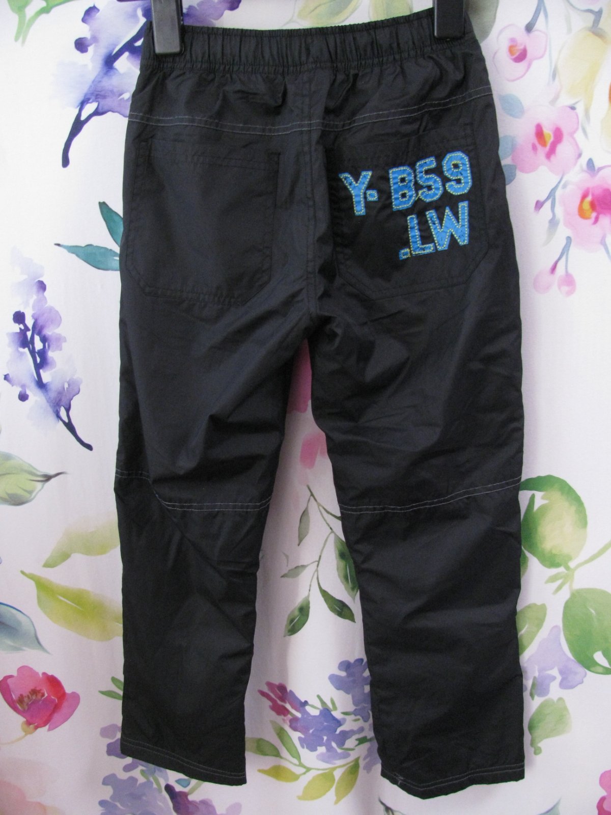 Hezké, tmavě modré, šusťákové kalhoty, celo zateplené fleecem, v pase guma a šňůrka, boční, zadní kapsy, vyšité logo, vzadu nápis, 100% polyester. U jedné šňůrky zašité párlé místo, na koleně malá záplata, viz fota, upozorňuji pro pořádek, dále bez jiných vad. Zohledněno v ceně. Kalhoty jsou plně nositelné.