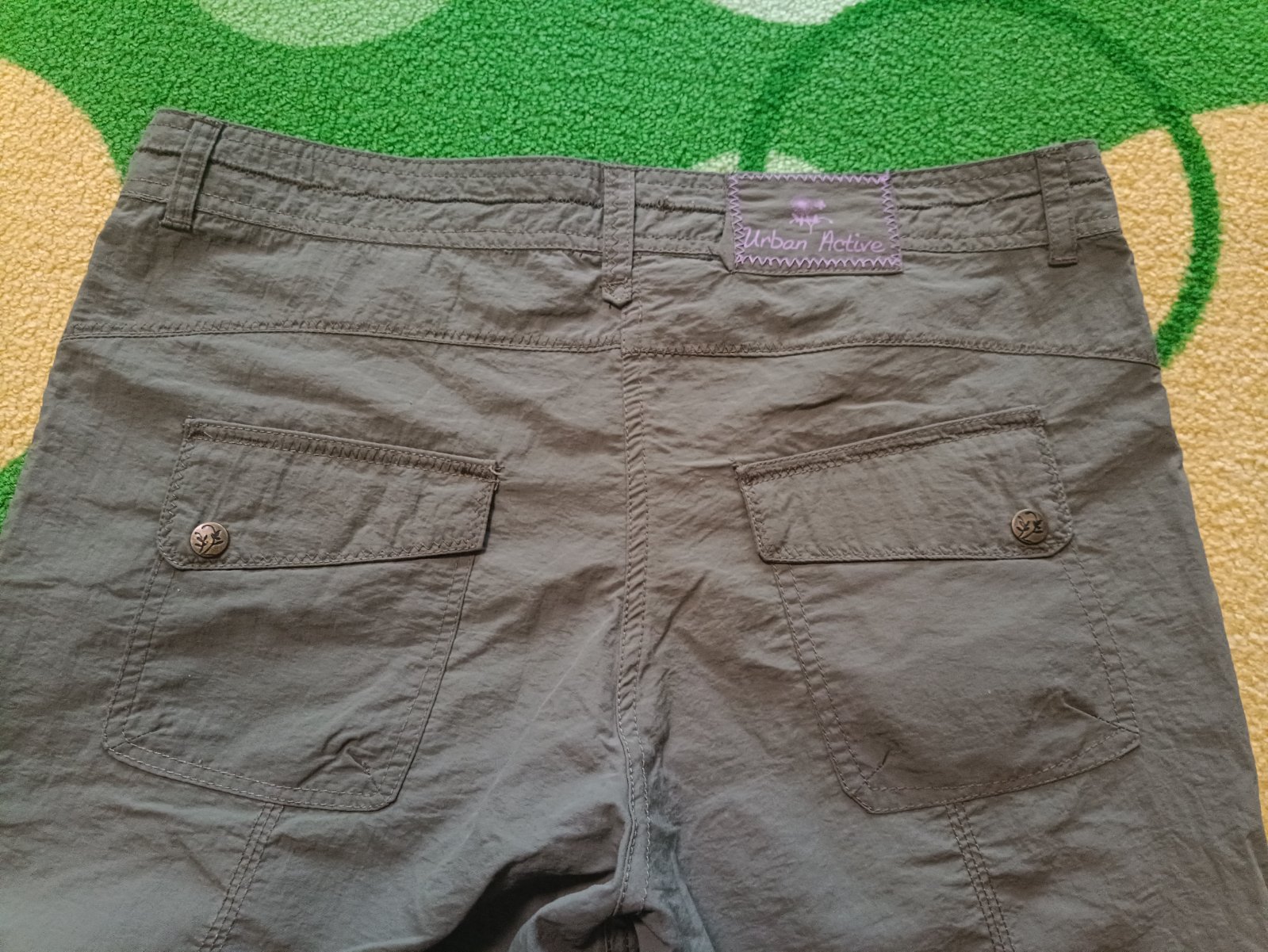Lehké letní kalhoty. Jezdec u zipu je nekompletní,viz foto,ale funguje.Jinak bez vady . Délka 105 cm ,pas 2 x 42 cm
