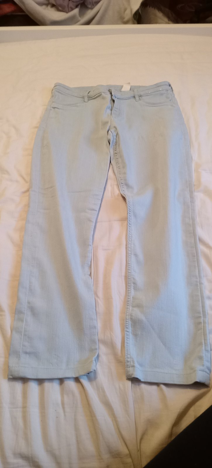 prodám sv.modré spíše užší džíny,zn.skinny fit,vel.170,pas 2x36cm,falešné kapsy,délka 87cm