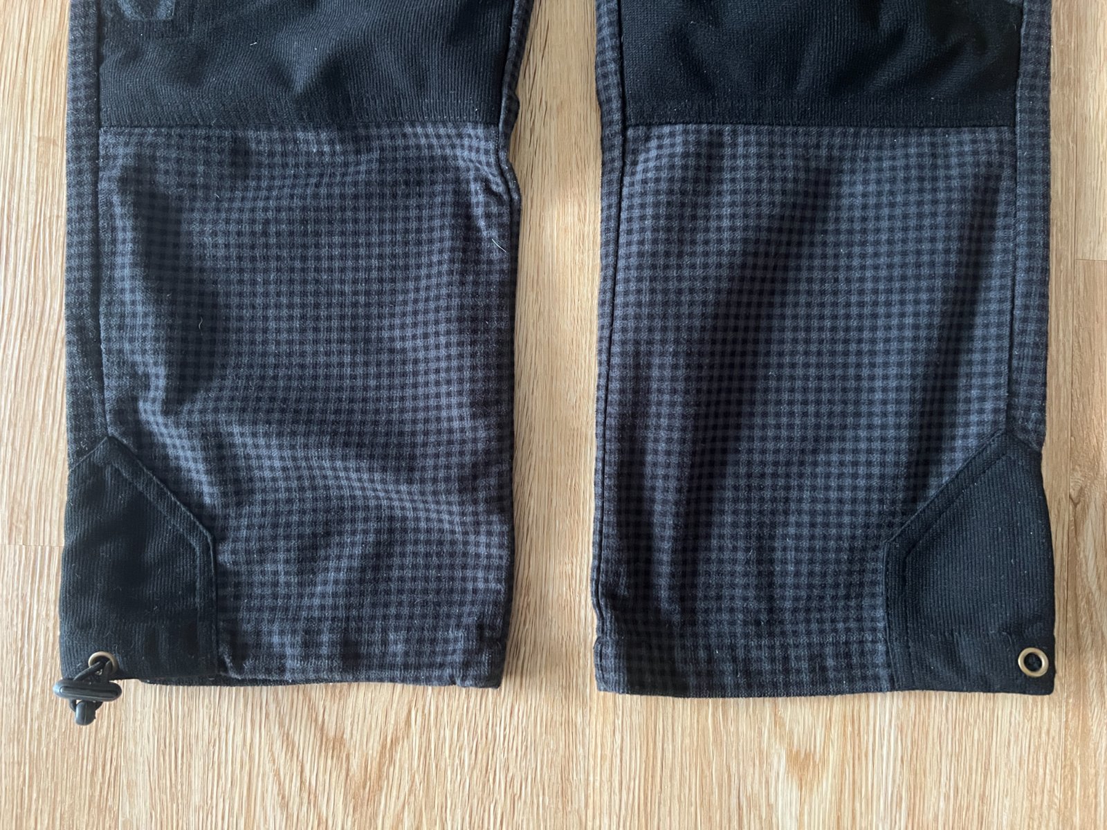 Délka 72 cm. Podšité fleesem. Na kolenech díry ve vnější vrstvě.