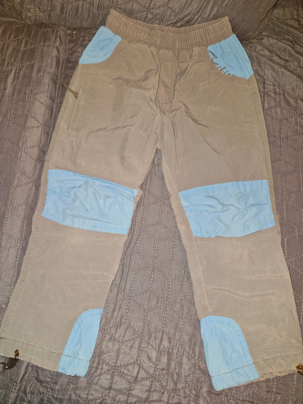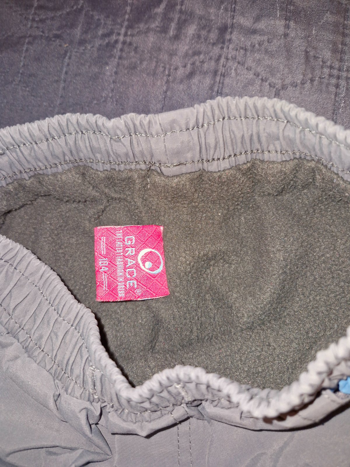 Prodám šedo-modré zateplené kalhoty značky Grace ve velikosti 104. V pase na gumu, tři kapsičky z přední strany, dvě kapsičky ze zadní strany. Ve velmi dobrém stavu