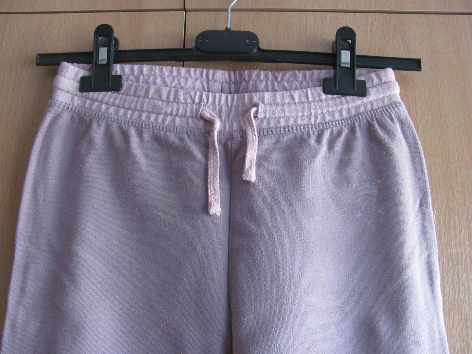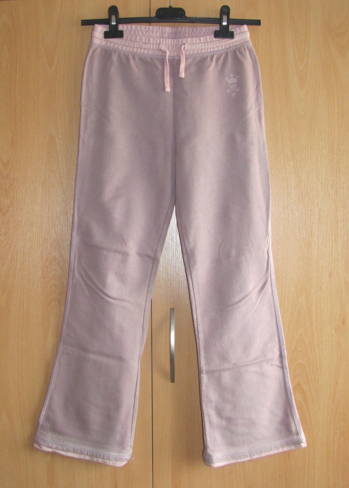 Dívčí tepláky, pěkný stav. Délka 80cm, rozkrok 56cm, pas 30cm, vel. 10/11 let.