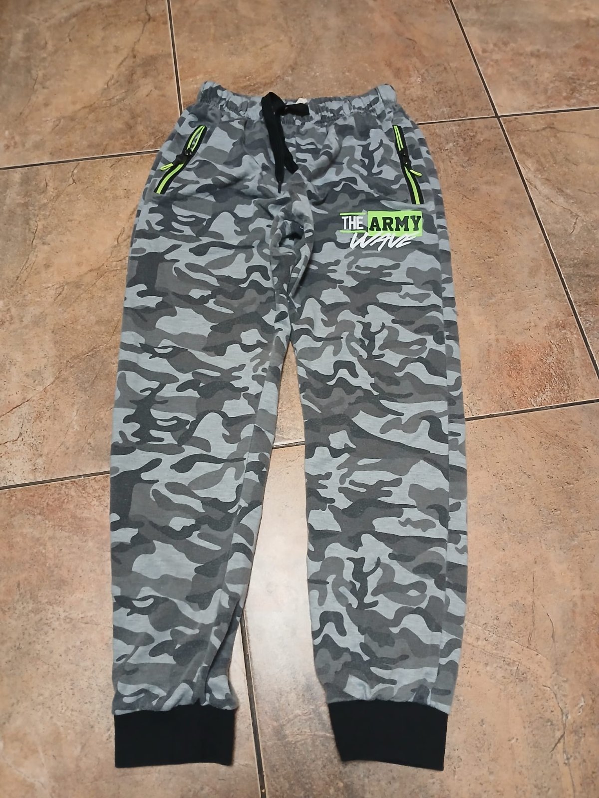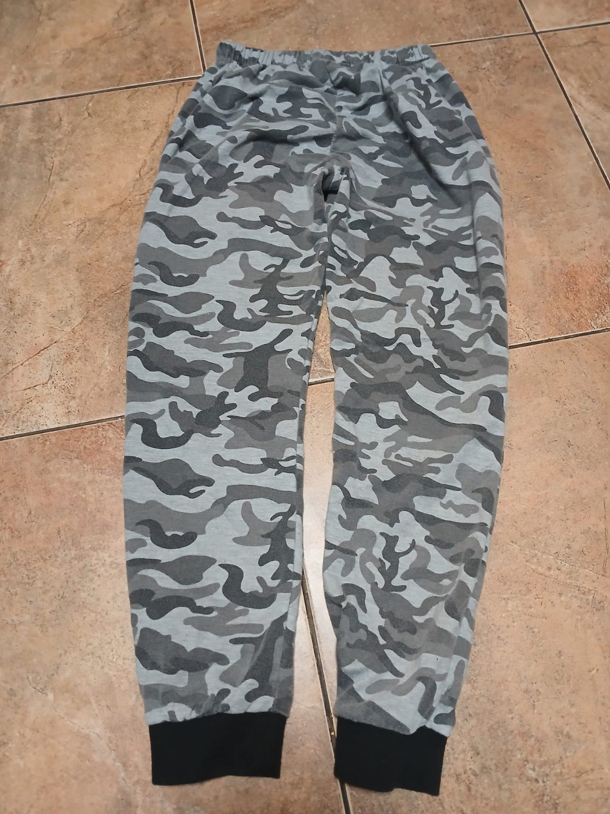 Bavlněné tepláky s nápisem na nohavici, boční kapsy, v pase guma a šňůrka, 95% bavlna, 5% viskoza.Na zadečku zašitá 1cm dírka, jinak bez jiných vad. Zohledněno v ceně. Ještě užijete. Značka Belgie ...