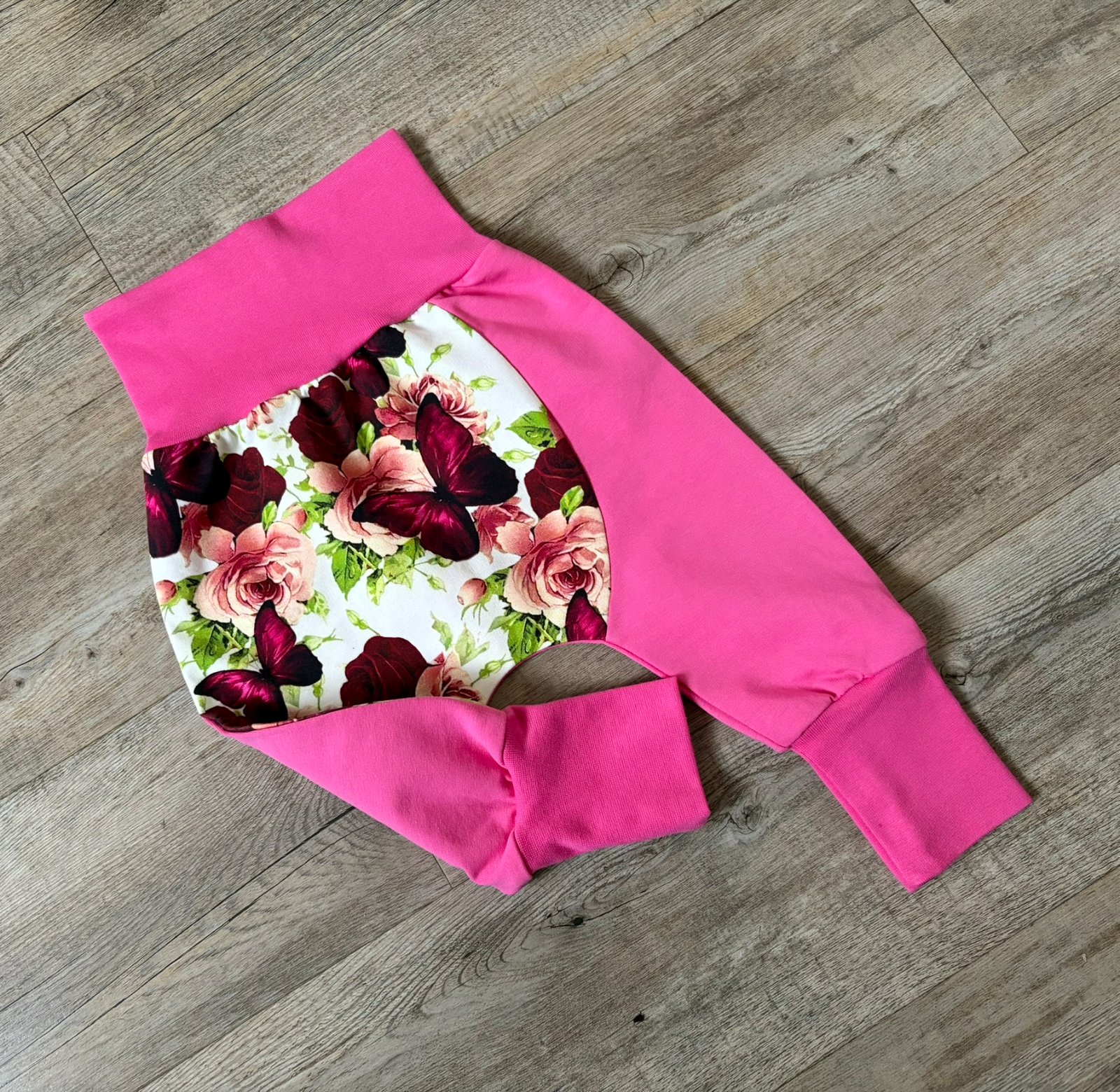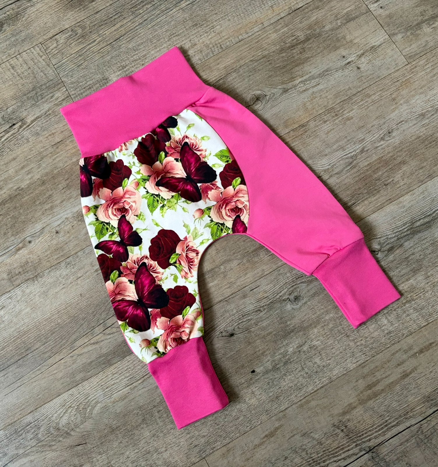 Rostoucí turky, vydrží pro velikost 74-80. Tenká teplákovina. Délka 45 cm.