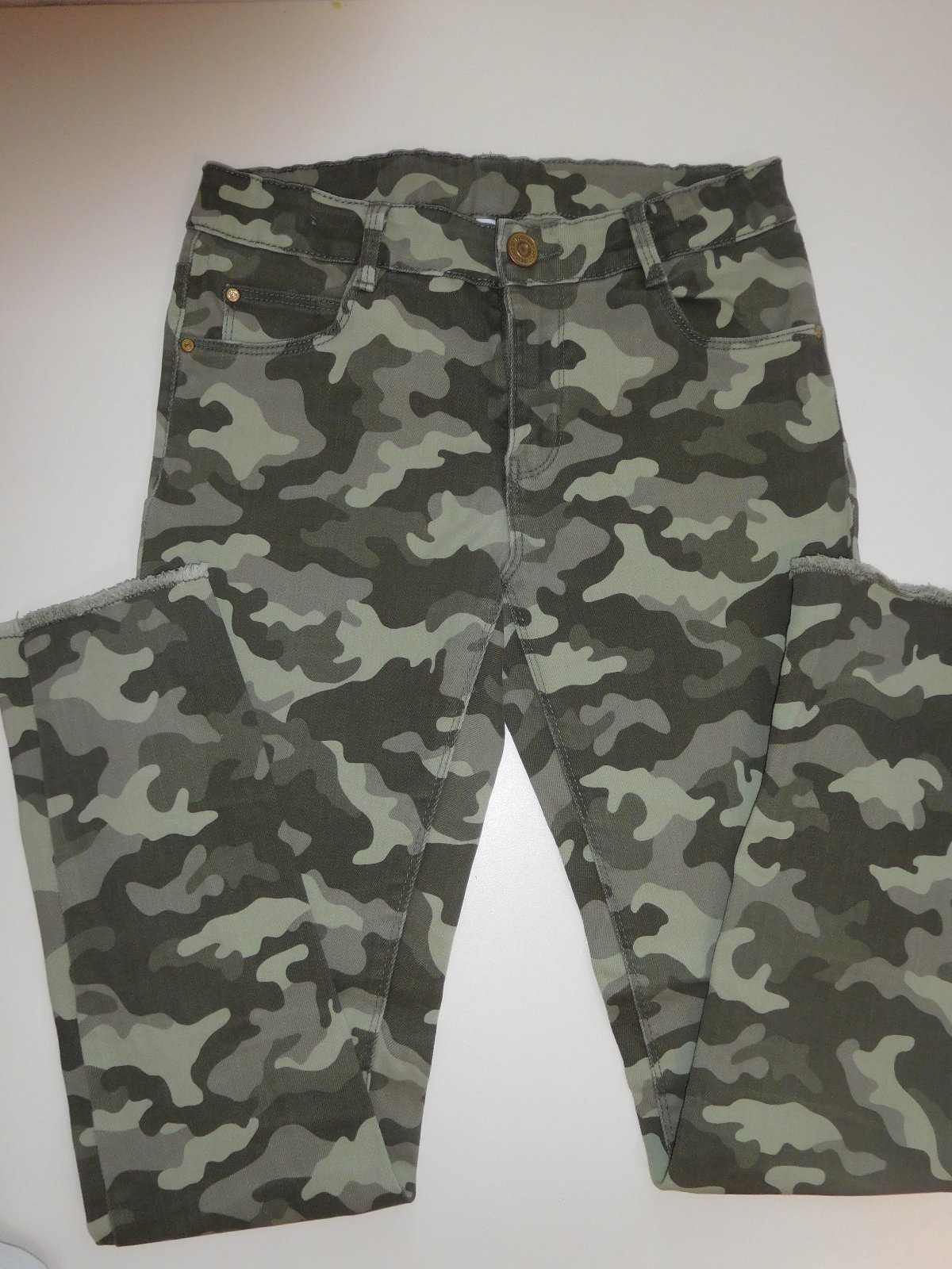 maskáčové džíny s roztřepeným ukončením nohavic zn. CA vel. 146, posuvné pásky v pase, ve výborném stavu