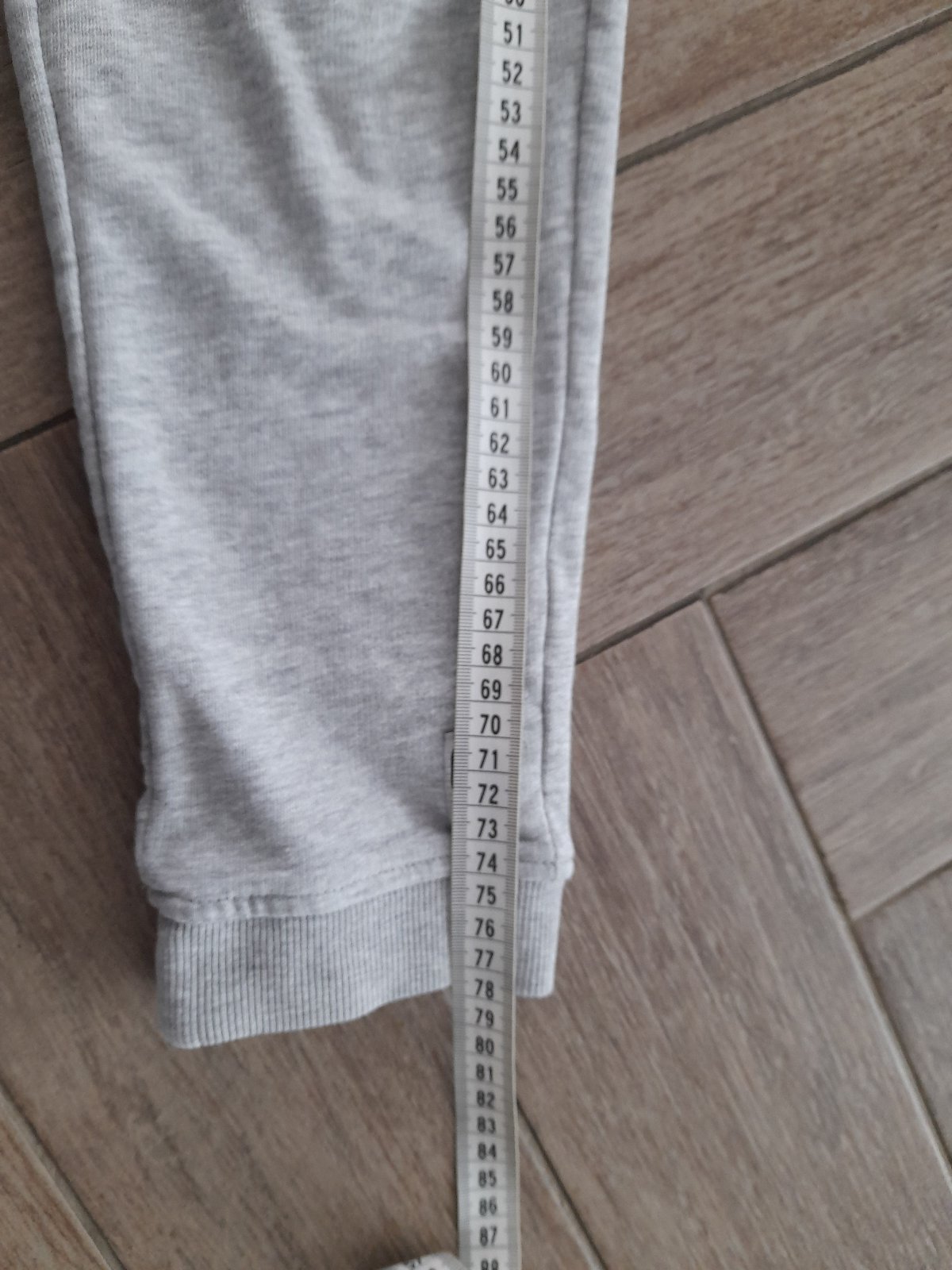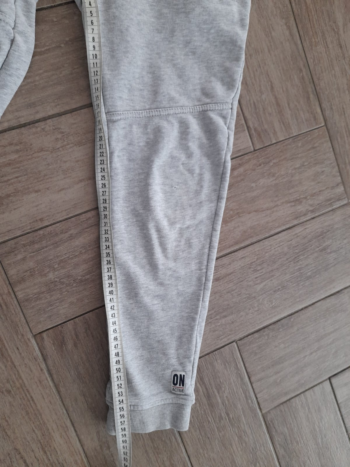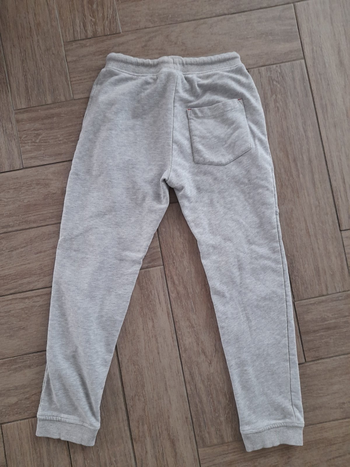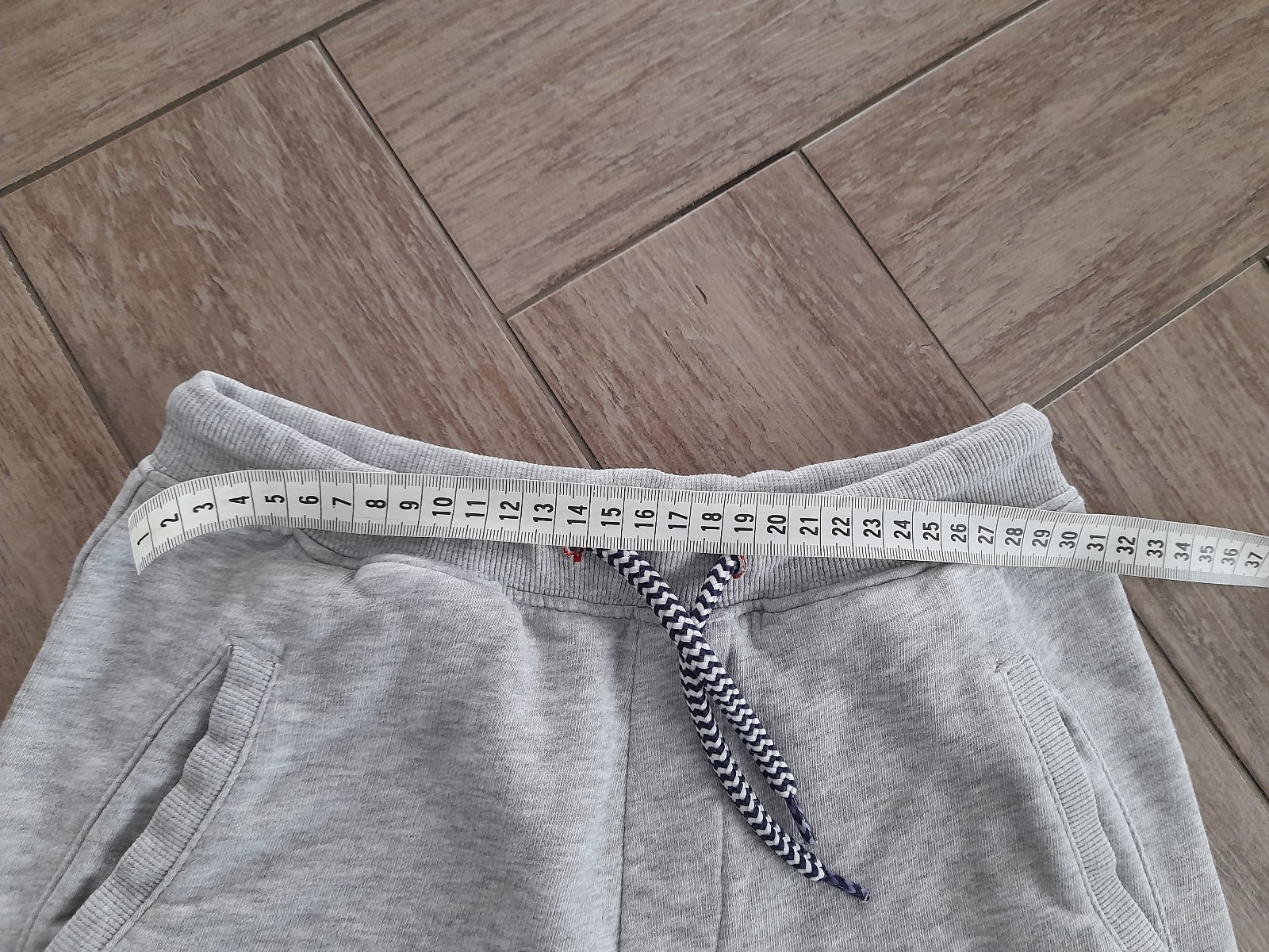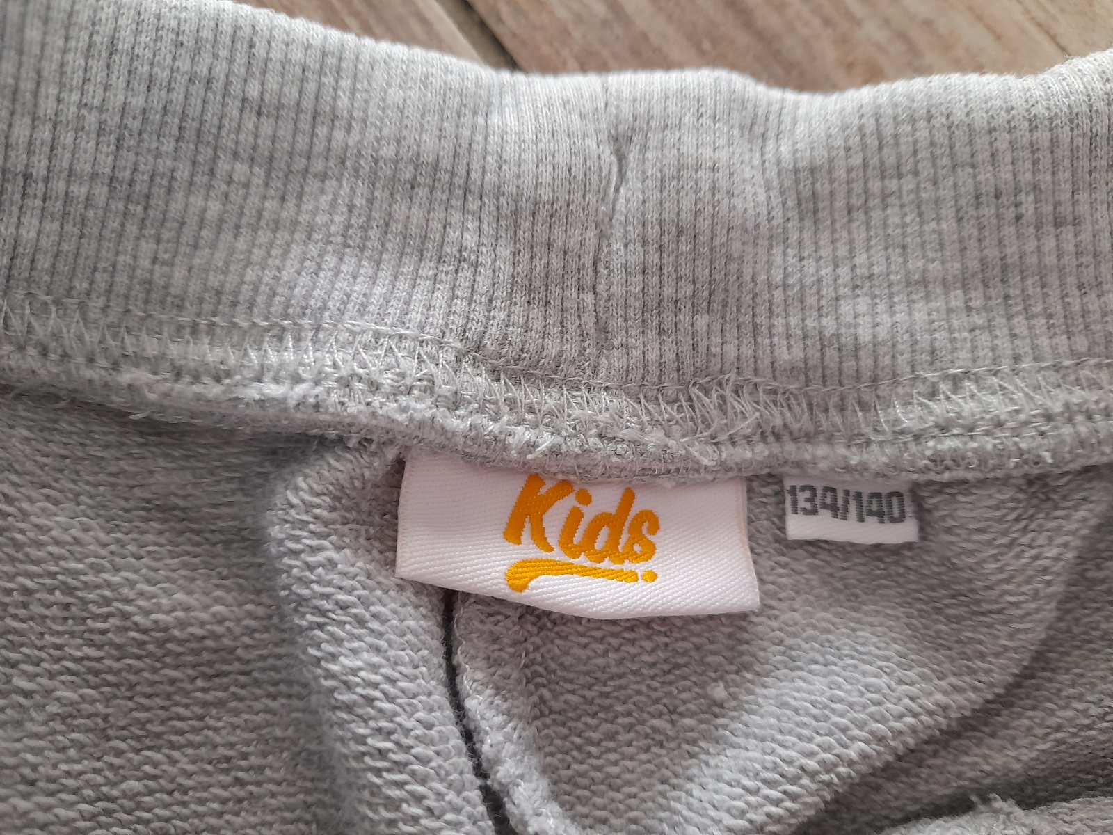 Chlapecké tepláky zn. Kids, vel. 134/140. Rozměry viz foto. Na levém koleni maličká dírka, na druhém koleni na kousku ošoupaná látka - není skrz, ale trochu je vidět "síťovina" - nafoceno.