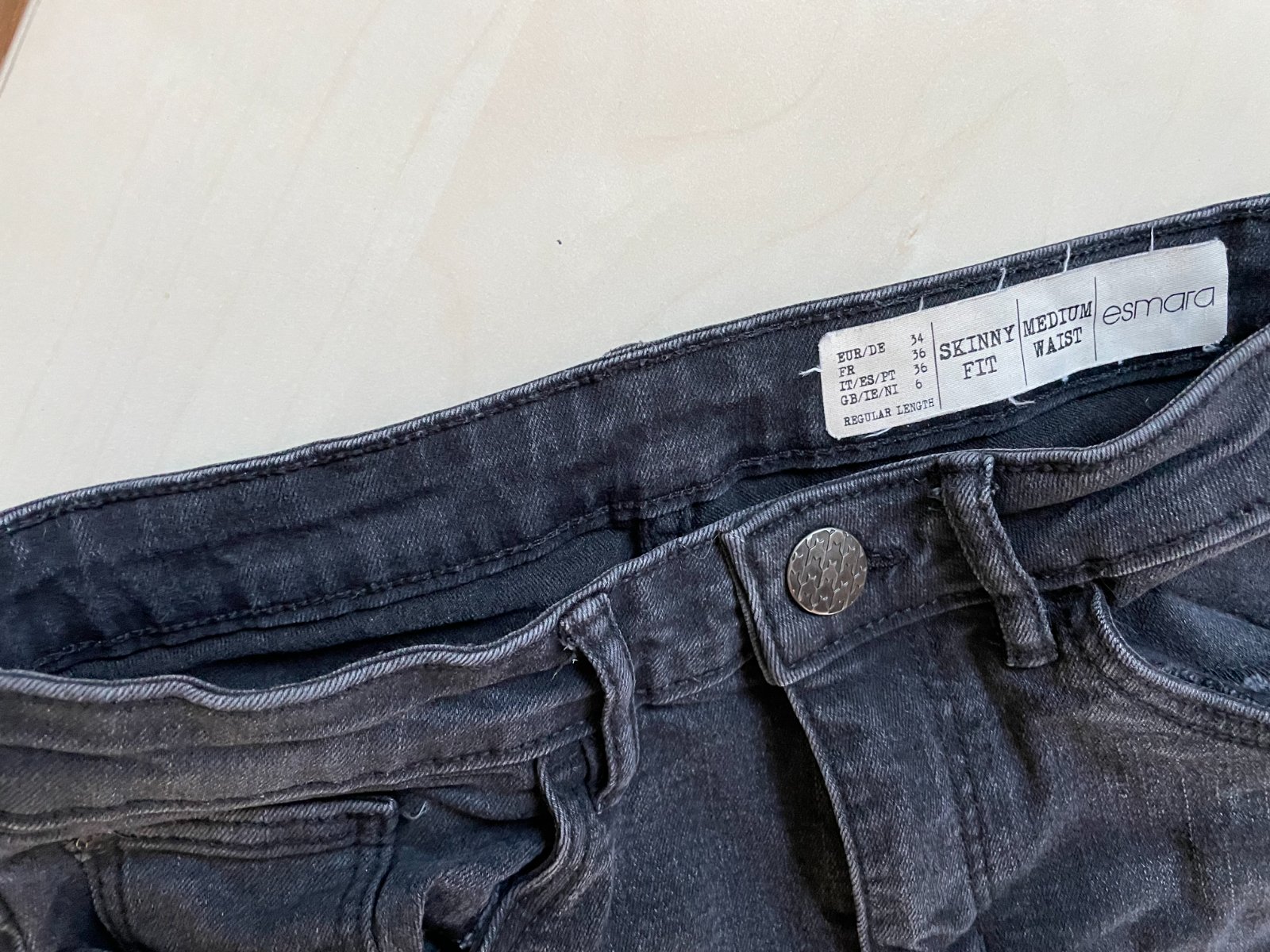 hol. nabízím k prtodjie tyto džíny, skiny fit, vel 34/ tedy XS medium waist, velikost 34/ tedy pro XS, měřte, Esmara. Barva není sytá černá jsou šíslé do šeda!Složení amteriálu neuvedeno. Nošené, bez vad, krsáné