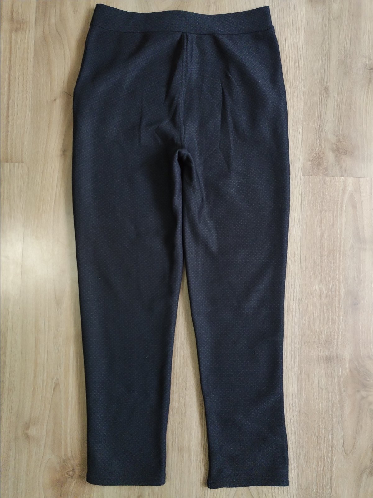 Dámské módní a velmi příjemné zateplené kalhoty ve velikosti L/40, rozměry pas 2x38-47 cm, boky 2x45 cm, délka 98 cm. Zdobené, vhodné jako společenské například do práce, složení 85% bavlna a 15% viskóza. Velmi kvalitní, v top nenošeném stavu, z čisté nekuřácké domácnosti. Cena 150 Kč