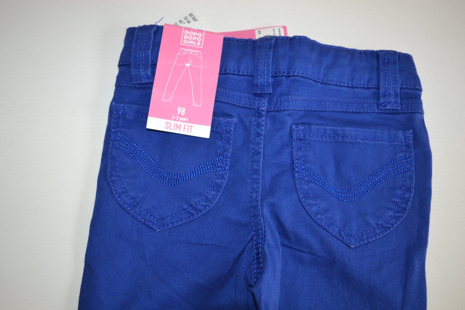 Nabízím nevyužité rifle zn. Dopodopo. Nové s visačkou. Velikost 98 (2-3 roky). Délka 55 cm, vnitřní nohavice 37 cm, pas 2x27 cm - lze regulovat pomocí gumy a knoflíku. Lehce elastické, příjemný měkký materiál. Slim fit střih. Barva je tmavší než na foto.