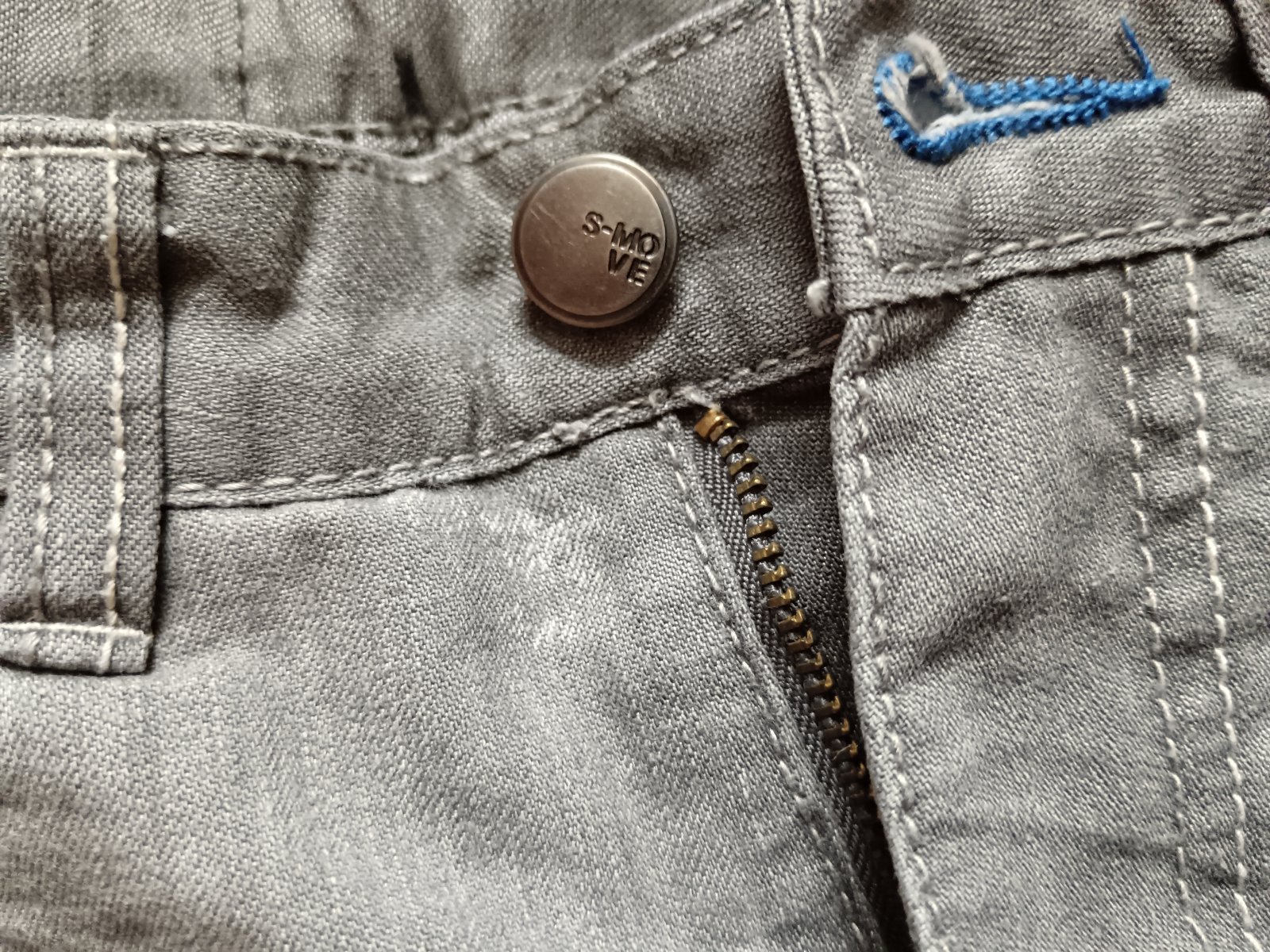 Regulace v pase. Na poslední fotce, vyfocené světlé místo na látce, pod knoflíkem. Asi "odřené" od zapínání.