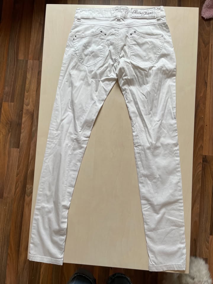 2054. nabízím k prodeji tyto bílé kalhoty, vel 27, RR Vintage denim. M ateriál jako plátno, složení neuvedeno. Nošené, bez vad , krásné