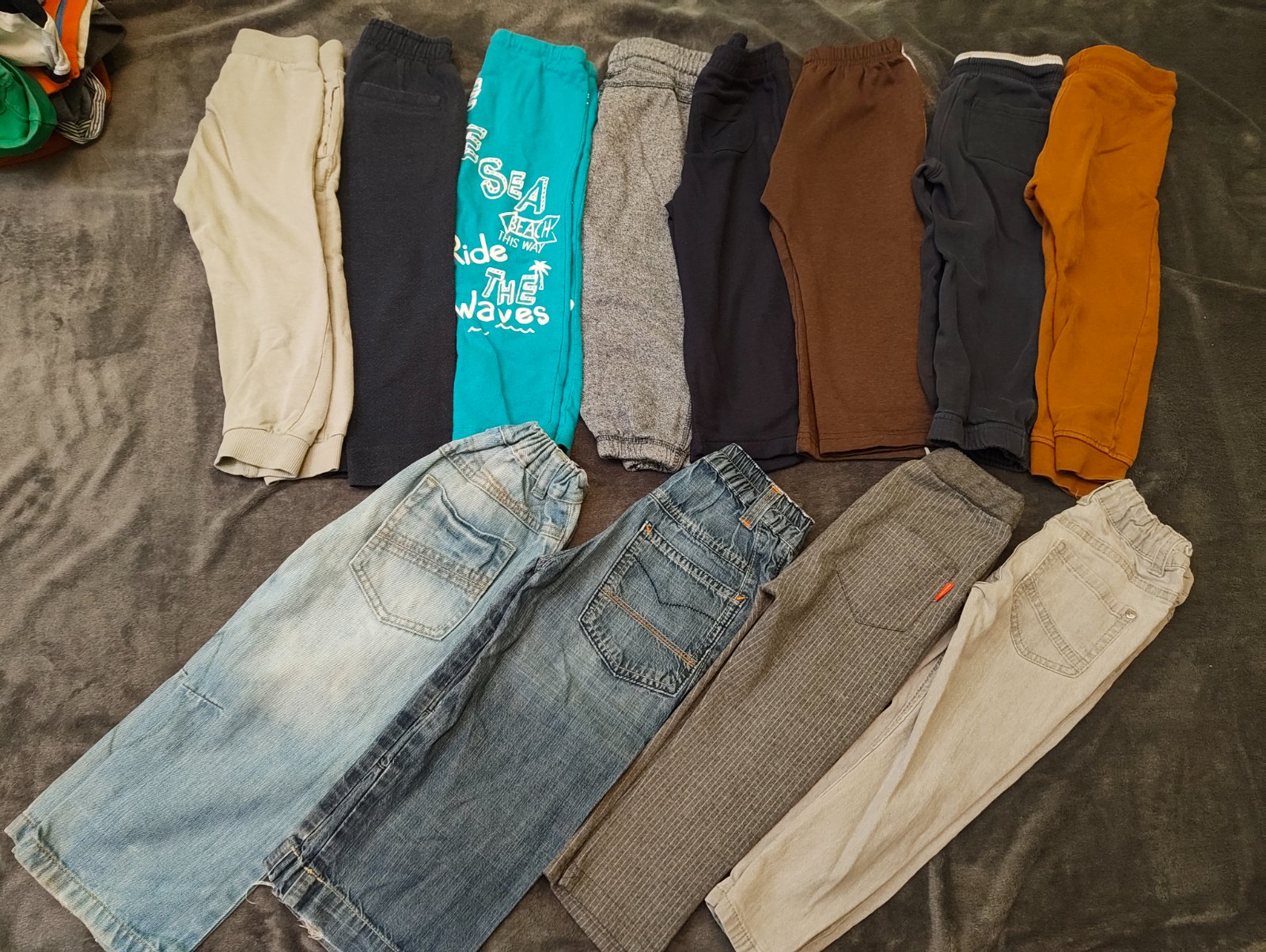 Kapsáčové kalhoty, podšité bavlnou, byly naše oblíbené, nošení je trochu znát podle světlejších kolen, ale jsou furt super. Celková délka 55 cm, vnitřní délka 35 cm.