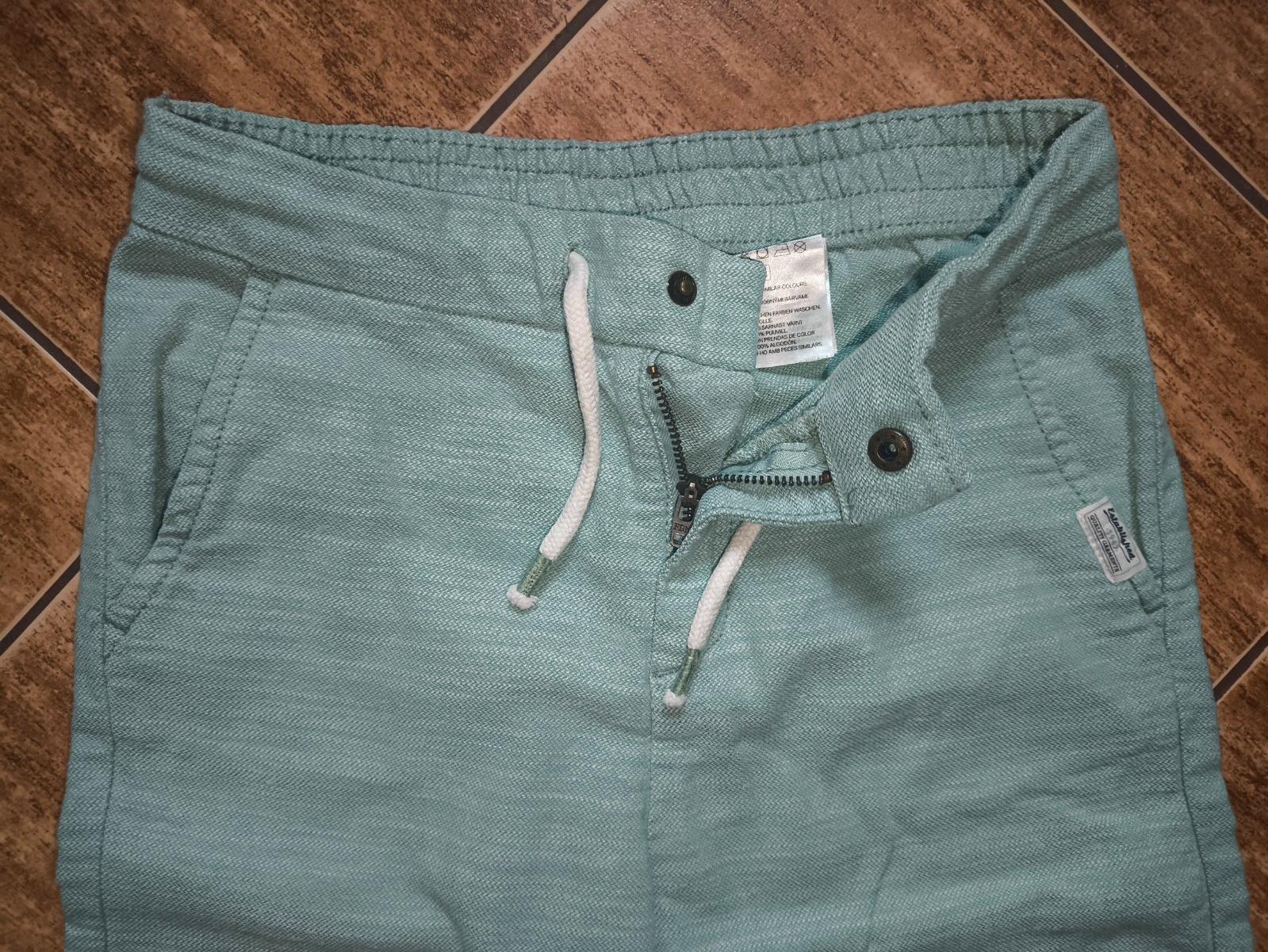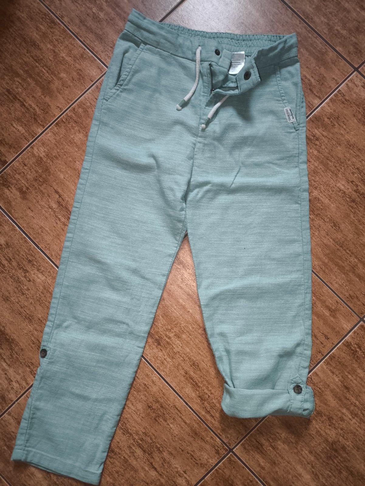 Kalhoty značky H&M, velikost 128. Kolena obarvené od trávy (viz. foto), jinak bez dalšího poškození.