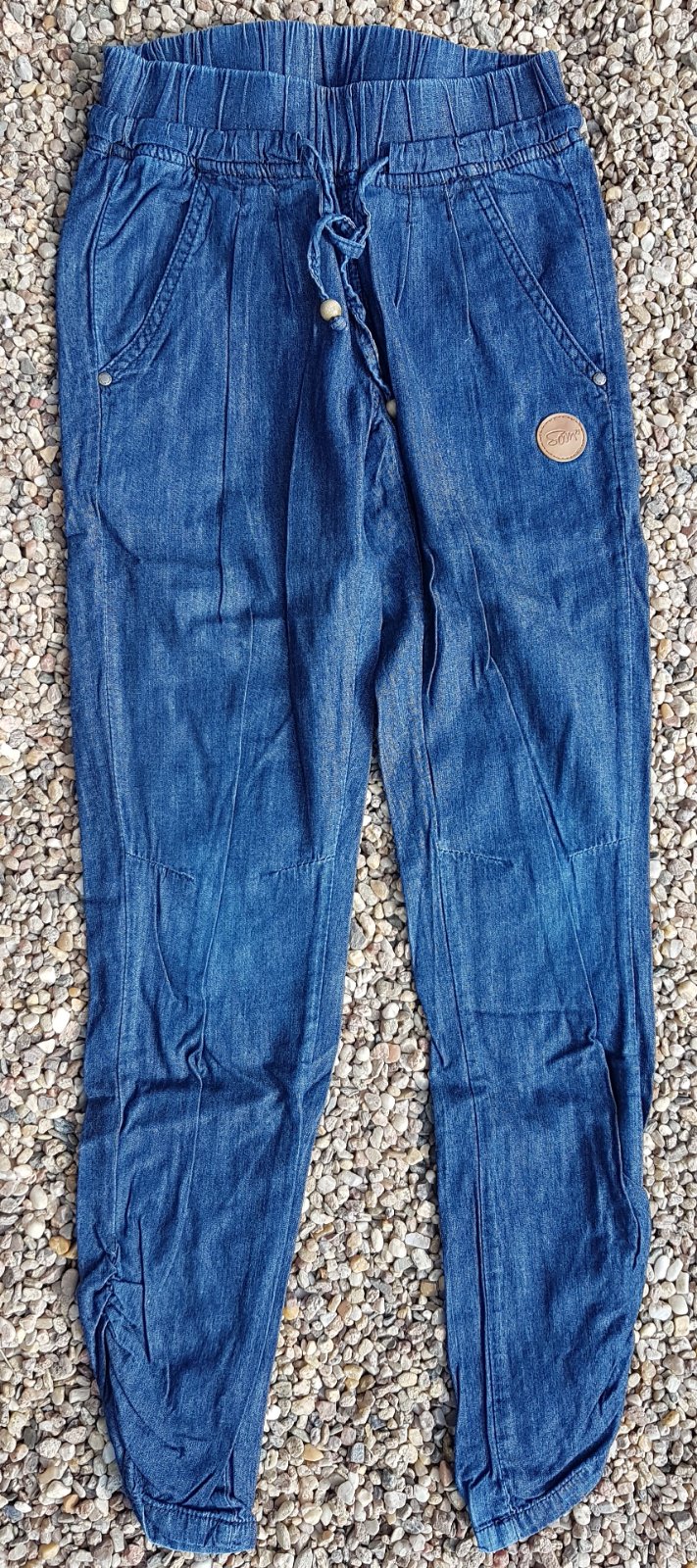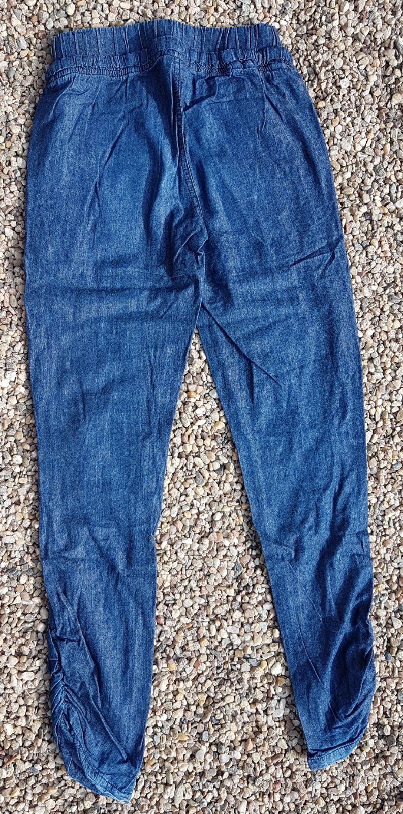 TOP stav, lehké, směs bavlny a viskózy, díky nařasení ve spodní části nohavic lze nosit déle, v pase guma a stahování na šňůrky,