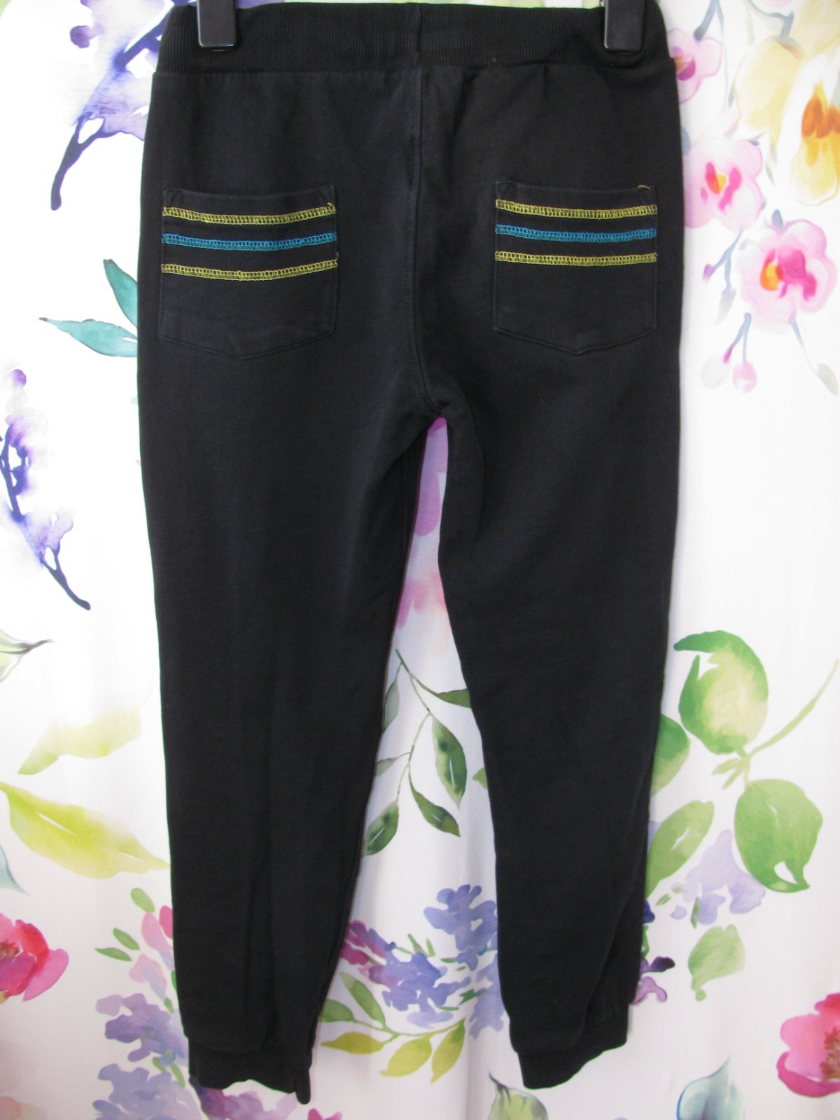 Krásné bavlněné tepláky, v pase pružný náplet a šňůrka, boční a zadní kapsy, Top stav bez vady. Štítek stran materiálu ustřižen.