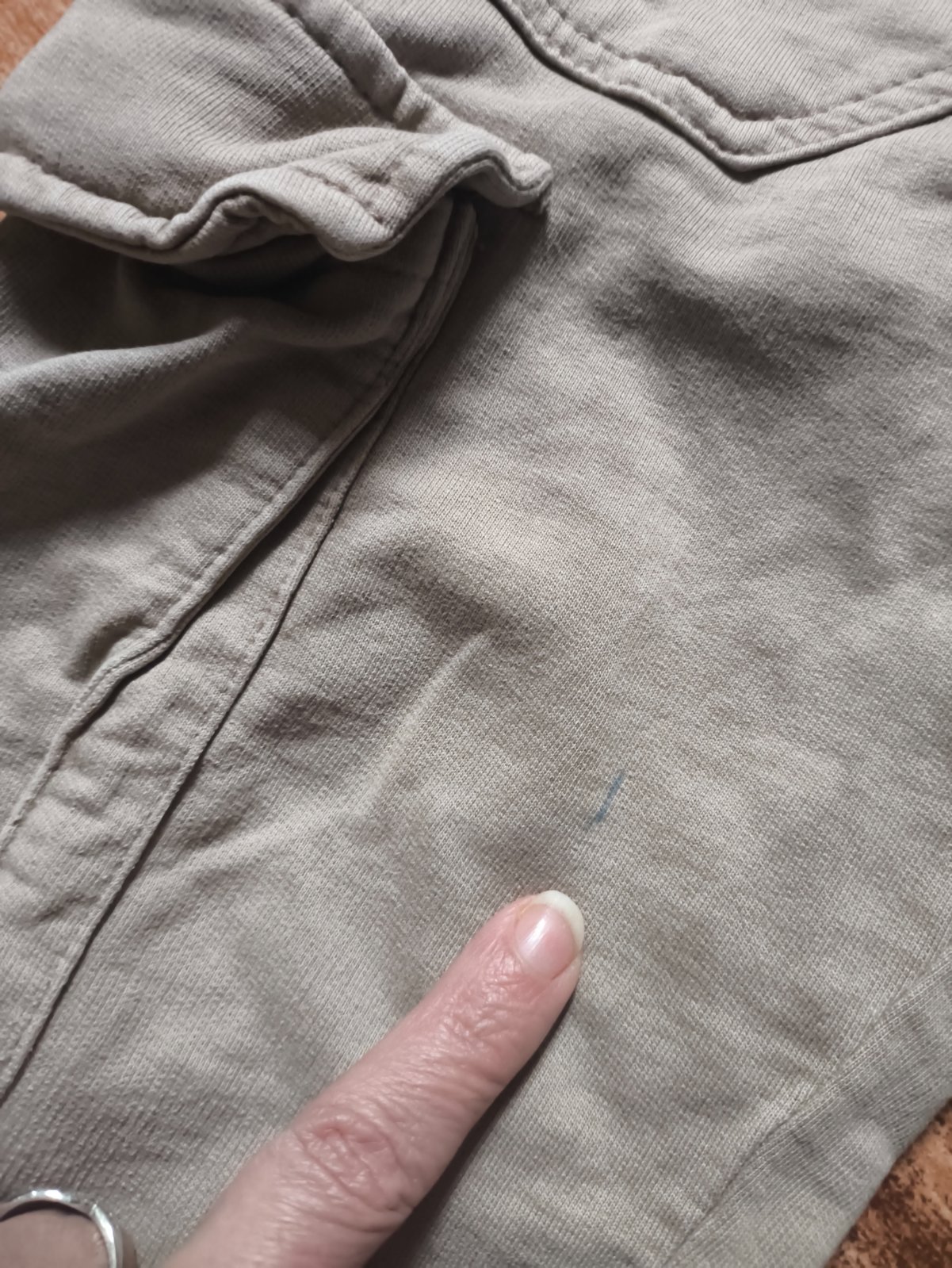 Moderné teplákové kalhoty s kapsami, po jednom dieťati, veľmi krásny stav, na jednom kolene čiarka od propisky asi 1cm dlhá, ale je vybledlá, úplne praním nepustila, viz foto .Inak bez poškodenia. C.d. 80cm.