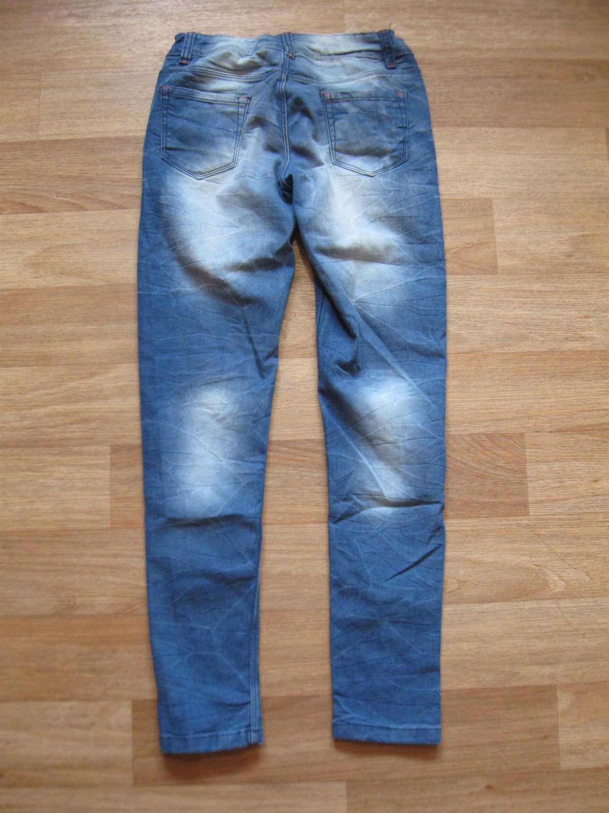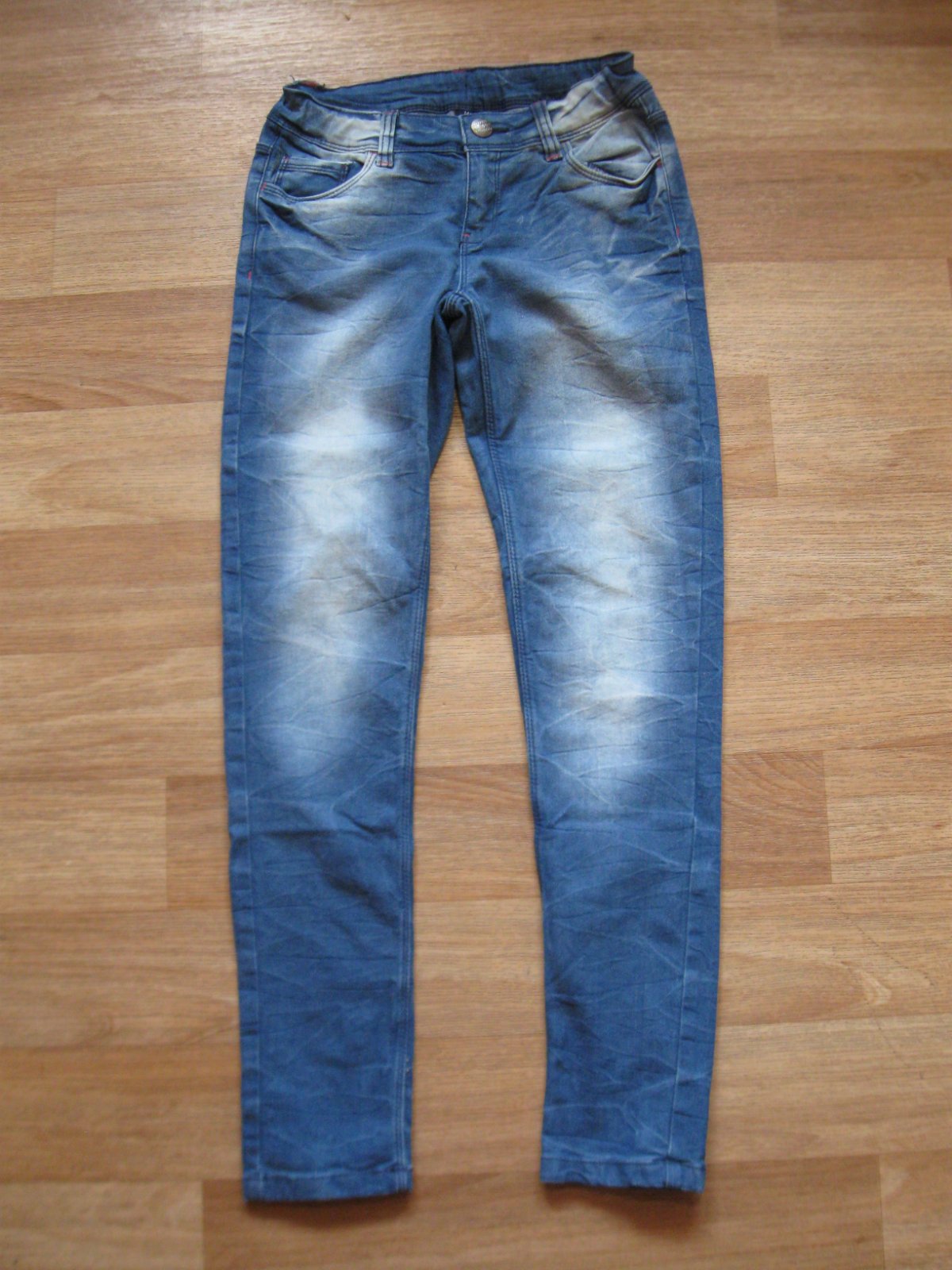 Dívčí rifle s kapsami, regulace v pase. Rozkrok 63cm, pas 31cm. Vel. 152. Velmi pěkný stav.