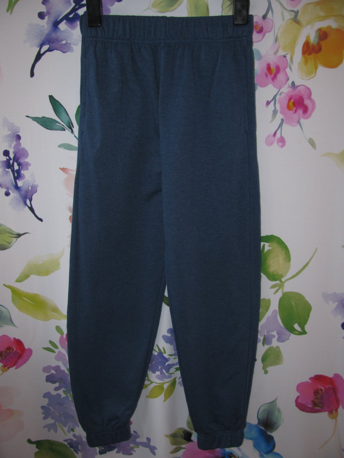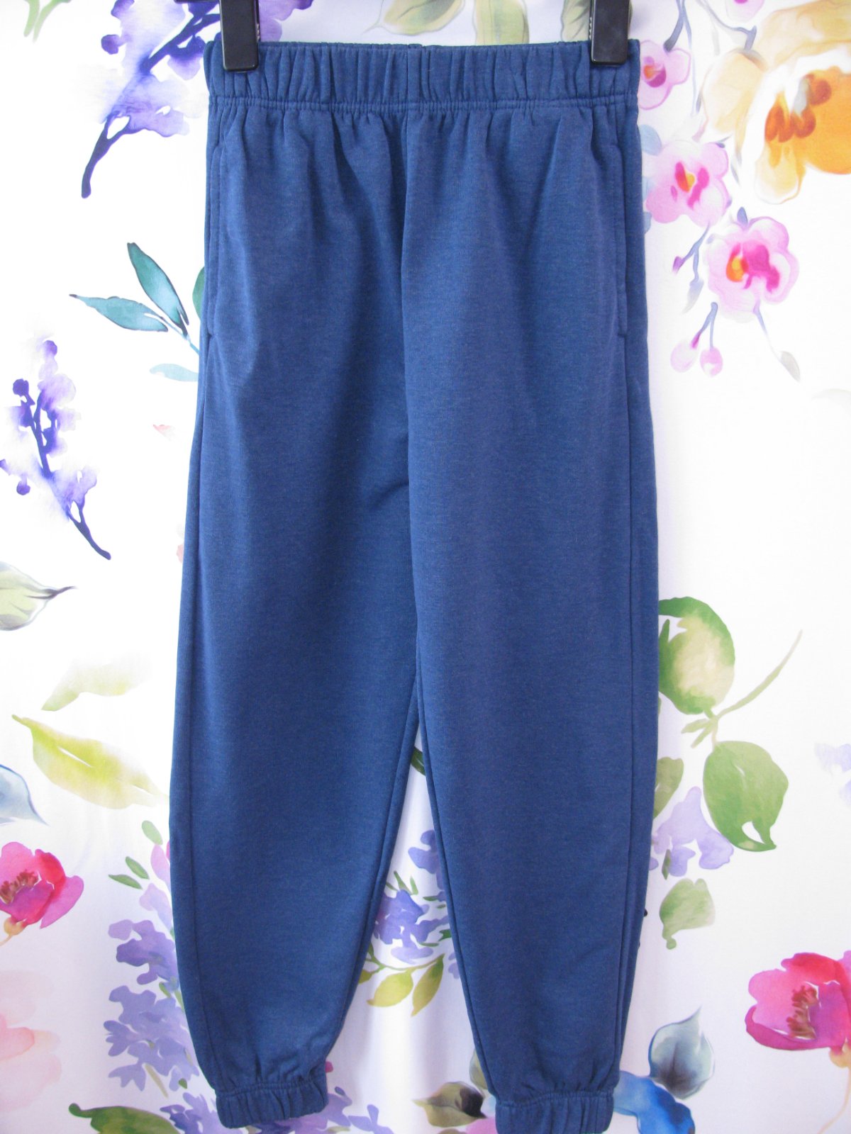 Tmavě modré, bavlněné tepláky, boční kapsy, v pase a lemy nohavic do gumy, Jsou nenošené, jen jedou vyprané, 10% bavlna, 50% polyester. Uved. vel.- XXS, dětská - v.152. Aktuální barva je tmavší foto, světlé je pro lepší náhled.