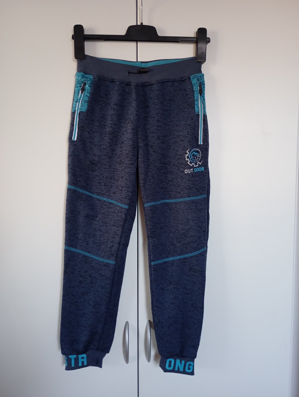 Reflexní prvky, dvě kapsy na zip, pas s gumou a stahovací šňůrkou. U tmavě šedých kalhot se synovi nešťastně urval jezdec u zipu viz foto.