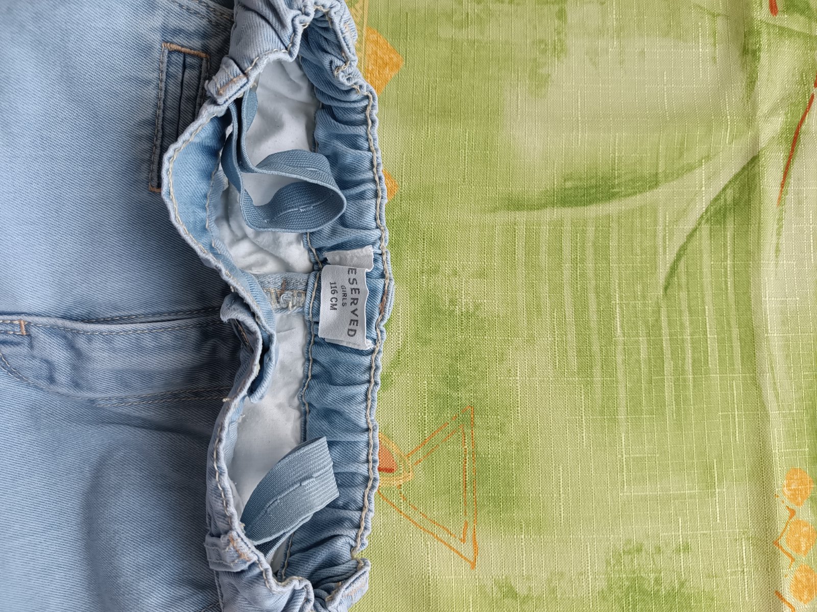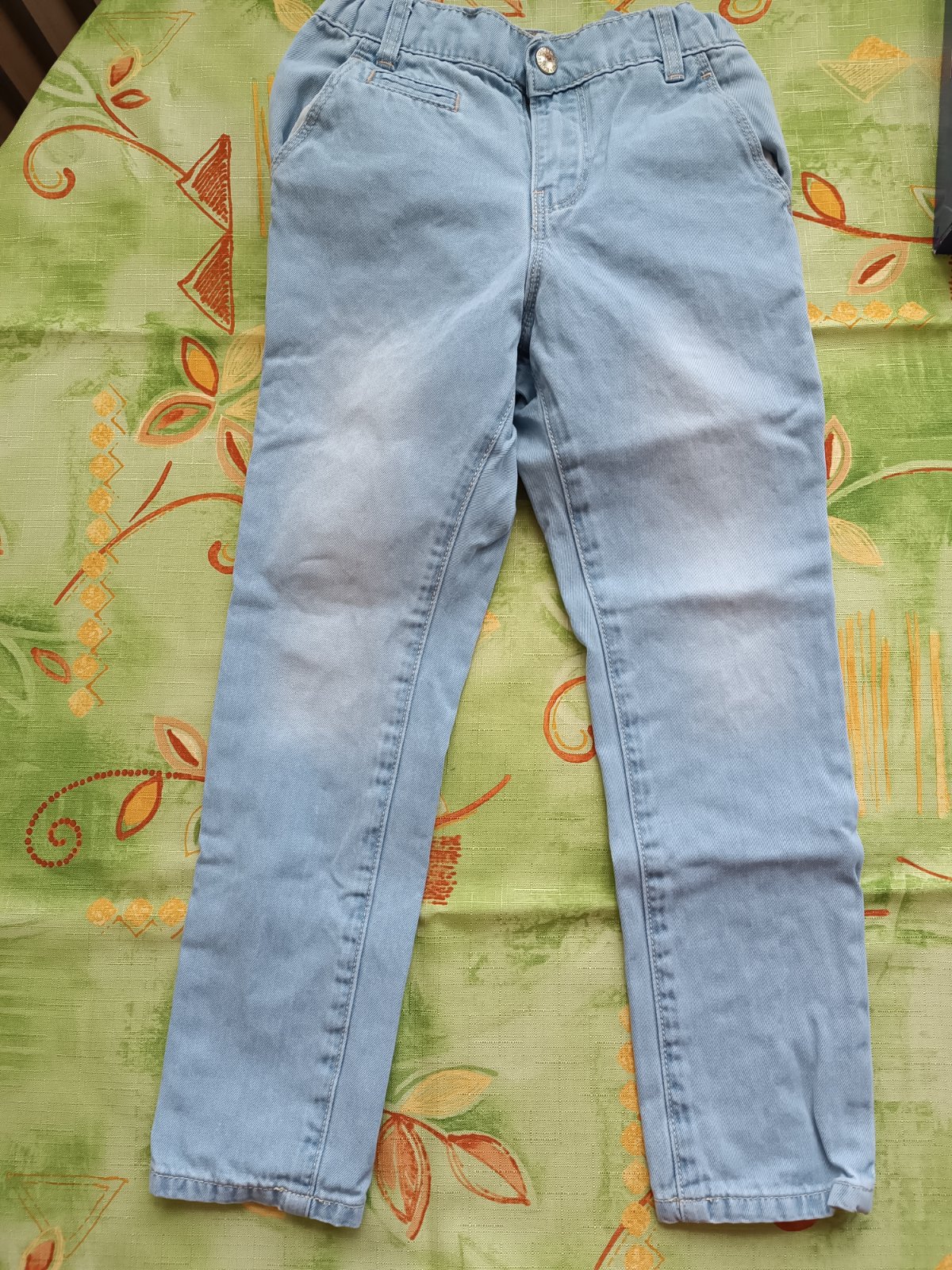 Prodám rifle nošené dcerou. V pase mají regulaci. Vel. 6 let, 116 cm. Skinny. Vzadu nad kapsou mají fialovou malůvku, nafoceno. Možnost osobního předání v Praze.
