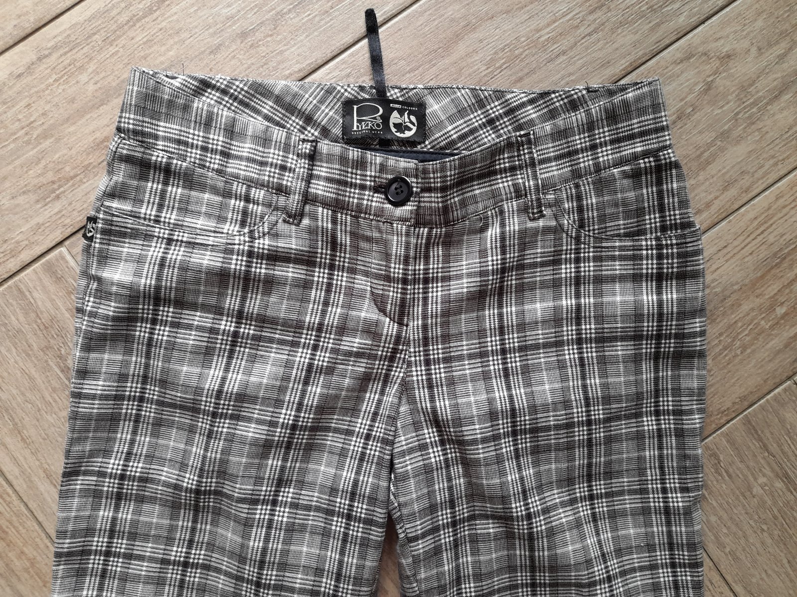 Kárované kalhoty smetanovo-hnědé barvy, vel. odhaduji S - rozměry viz foto.