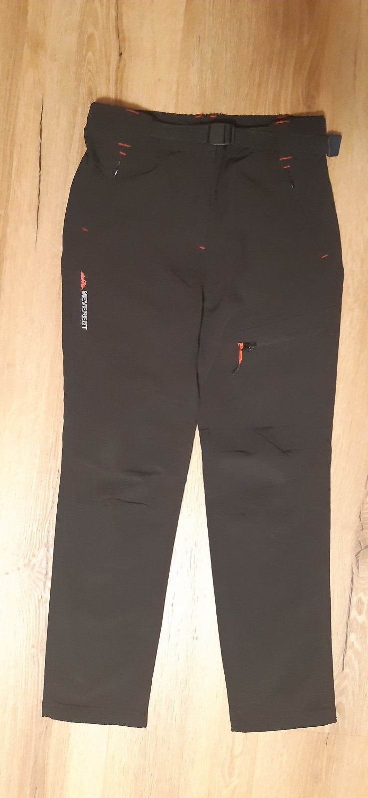 Tenké, lehce pružné univerzální outdoorové sportovní kalhoty Neverest 152 v barvě černé s červenými doplňky, zcela bez podšívky, vzdušný materiál, rychle schne, dvě kapsy po stranách, v pase na druk a zip, pásek pro snadnější stahování. Vhodné i pro velmi teplé dny, skvělé na jaro i léto. Může mít holčička i kluk.