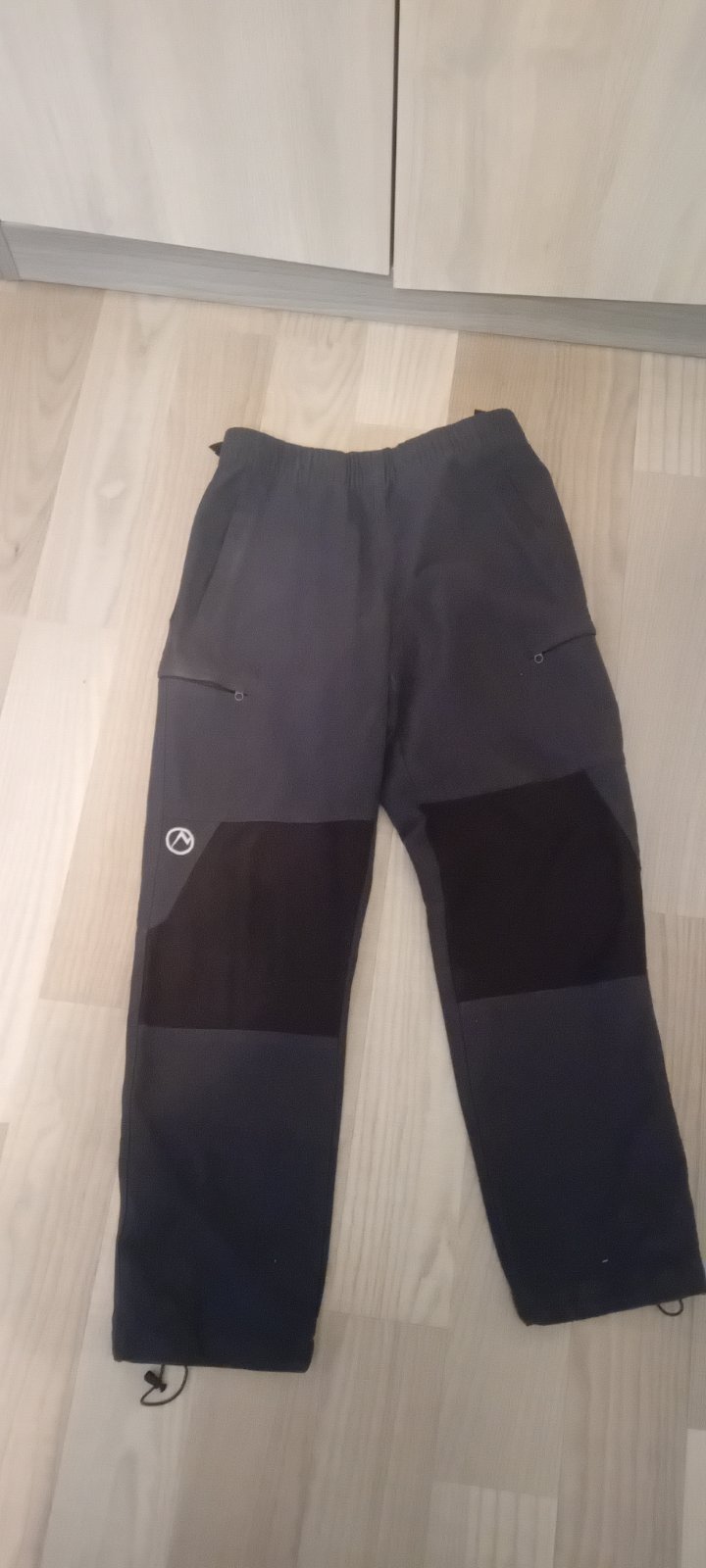 Velikost 152, nošené synem. V pase klasické zapínání + regulace na gumu.