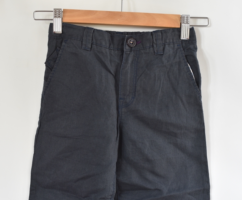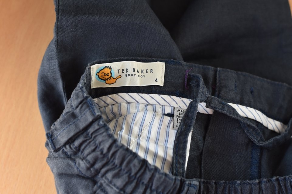 Tm. modré plátěné kalhoty značky TED BAKER. Mat. nepruží. V pase guma + šnůrka.