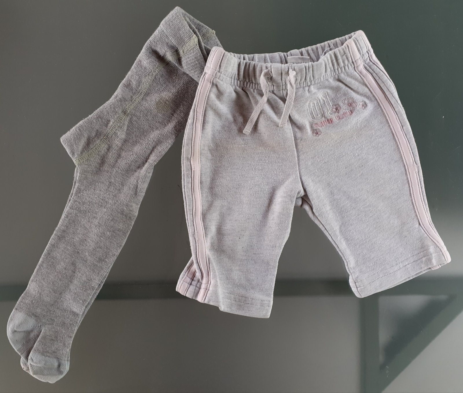 Dcerkou párkrát nošené, moc pěkné, jsou bez flíčků, dírek a žmolečků, mají jen nepatrný chloupek od praní. Velikost je uvedena Tiny Baby (do 3,4 kg), materiál je 100% bavlna. ROZMĚRY: pas 2x 17,5 c...