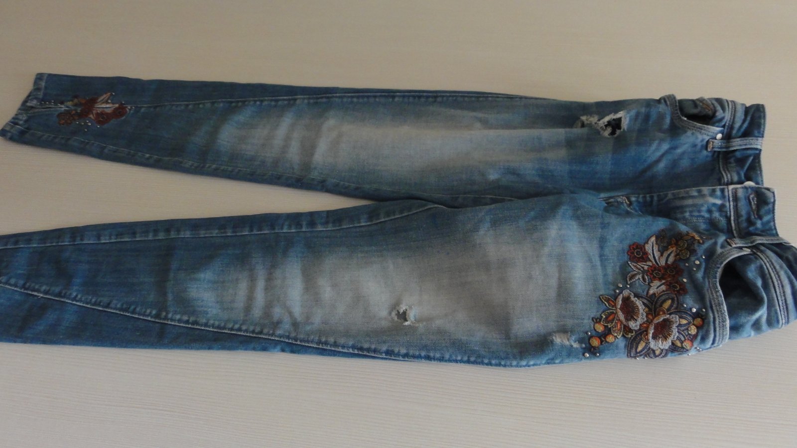 Dívčí džíny zn. Generation se čtyřmi kapsami a zapínáním na zip a knoflík. Jsou velice zachovalé a mají lehce rozšířené nohavice a ozdobné štepování na kapsách, v pase poutka. Nohavice jsou lehce z...