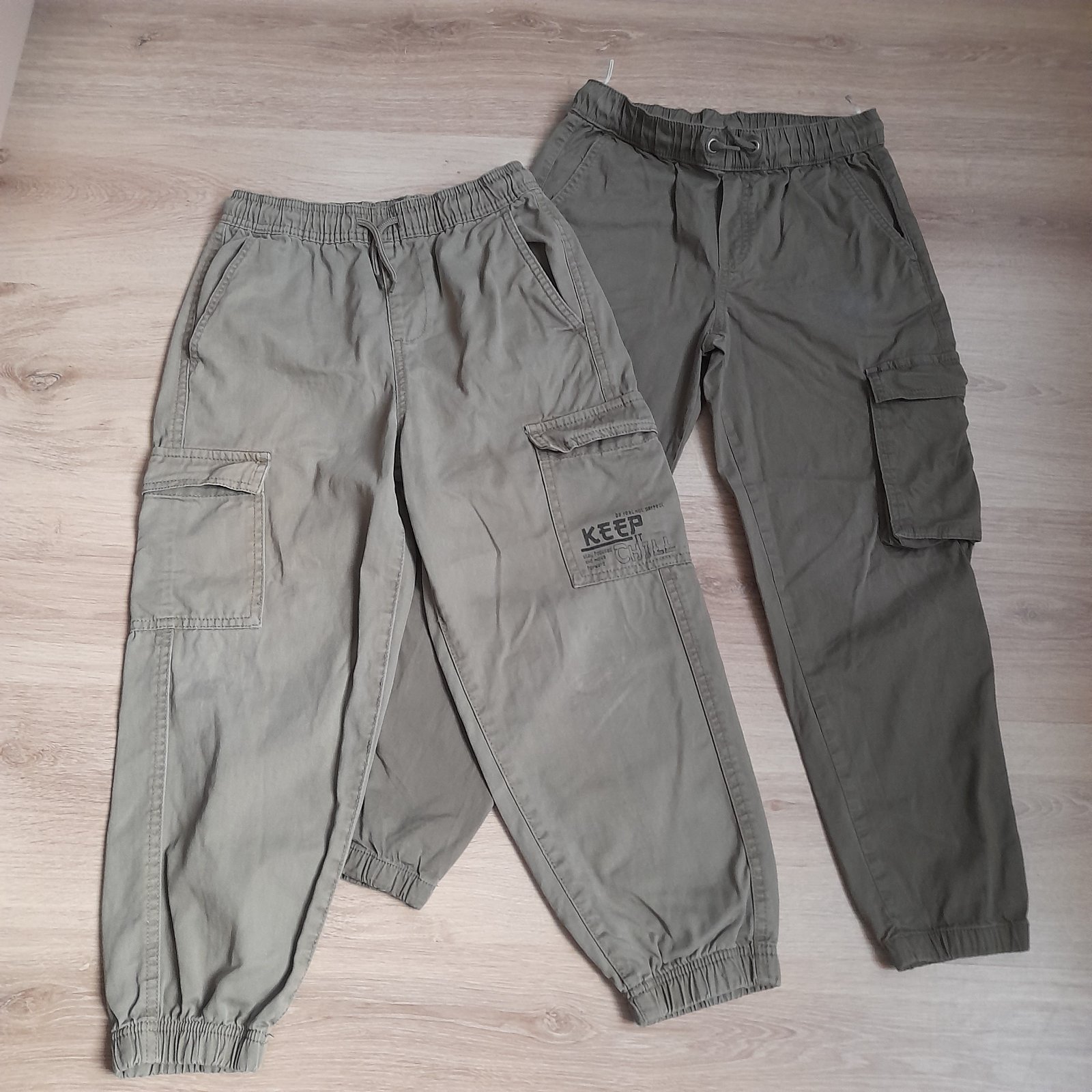 Prodám zelené plátěné kalhoty (2 ks), zn. C&A a Y.F.K, vel. 134.