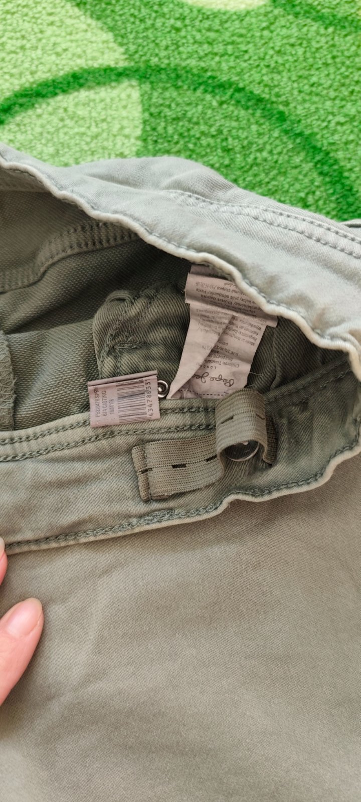 Pružné kalhoty ,barva je trochu vyšislá. V pase guma s aretací . Velikost označeno 16/M/176.