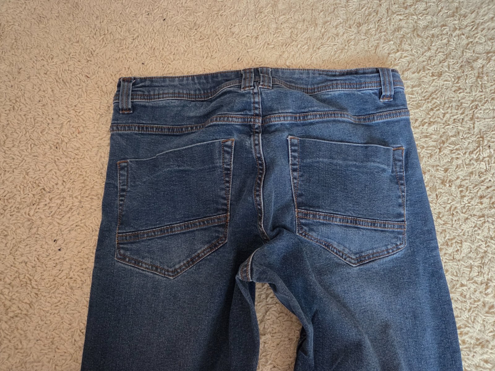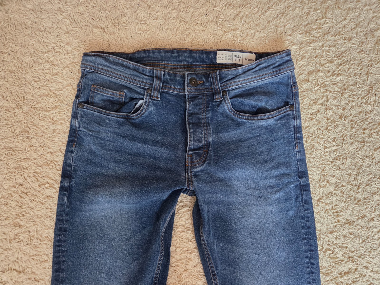 Nošené a prané, bez fleků a děr. Pořád moc hezké a měkké. Mají 2% elastanu takže jsou pohodlné.
