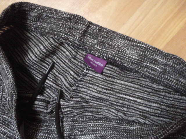 nošené, pěkné, nejsou silné, délka je 101 cm, pas od 2x42 cm, přední sed 25 cm, nohavice u rozkroku 2x32 cm, psaná vel.L zn.Blue Motion