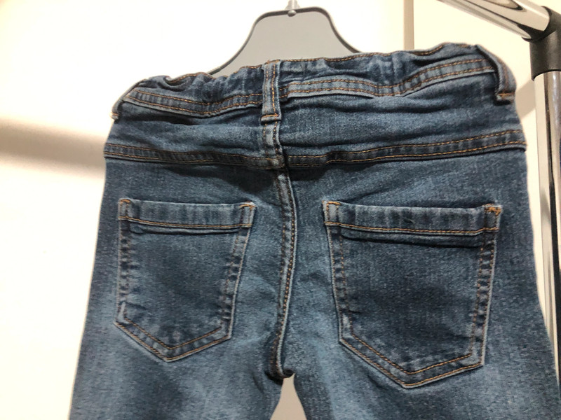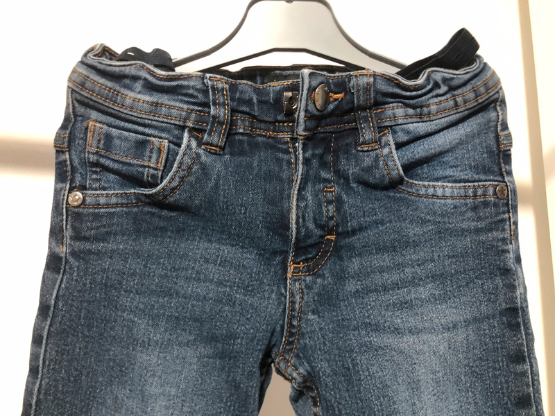 bavlna, elastan, pas má regulaci, nošené málo, velikost 116, slim střih, délka 64 cm.