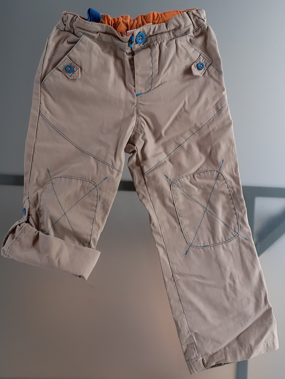 Slušivé slabší kalhoty. Moc hezky propracované detaily. Pružný pas. Perfektní stav, bez vad. Velikost uvedena 3-6 měsíců, ale syn je nosil, když už chodil, tedy ve více než roce. Raději tedy měřte...