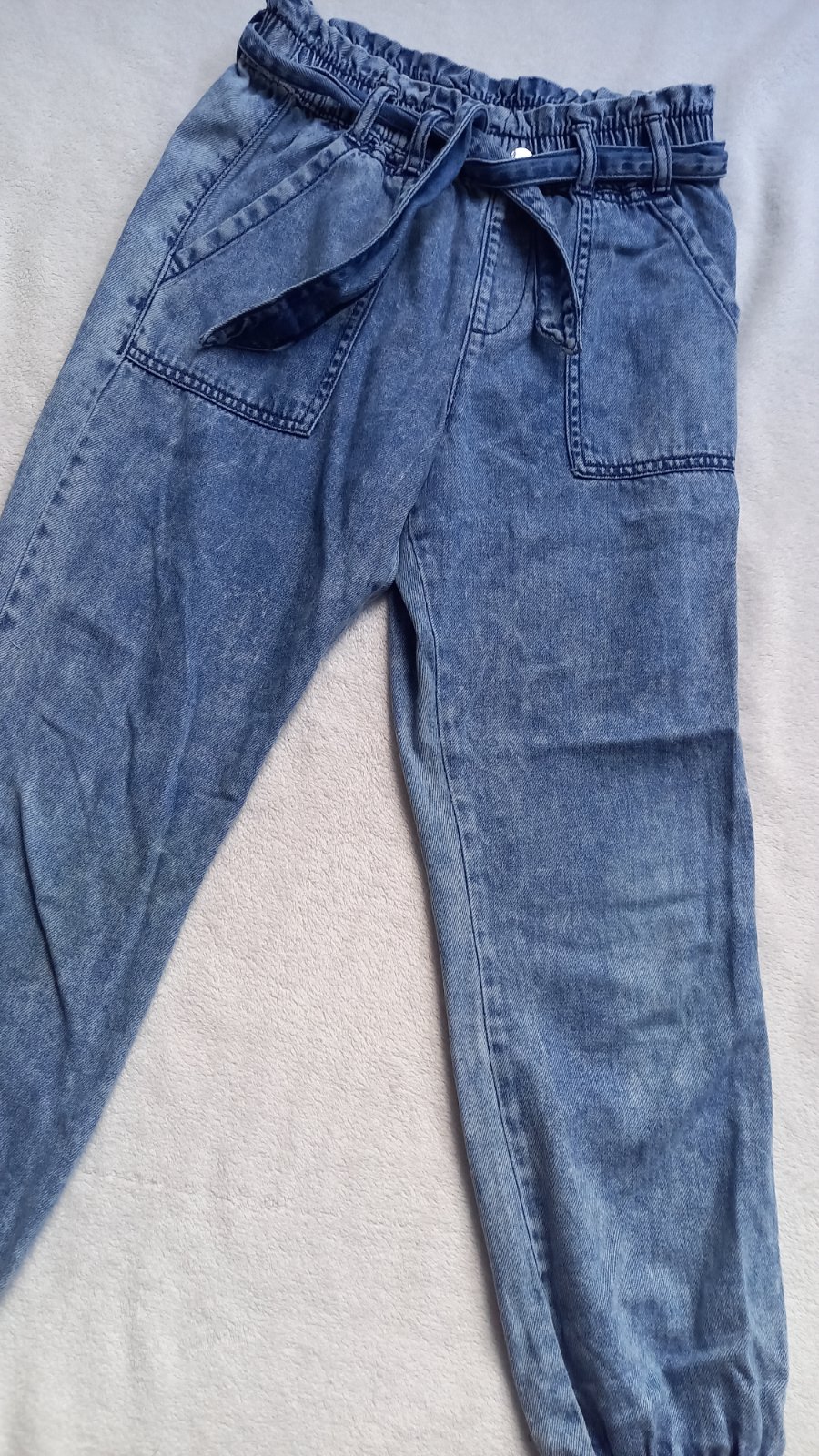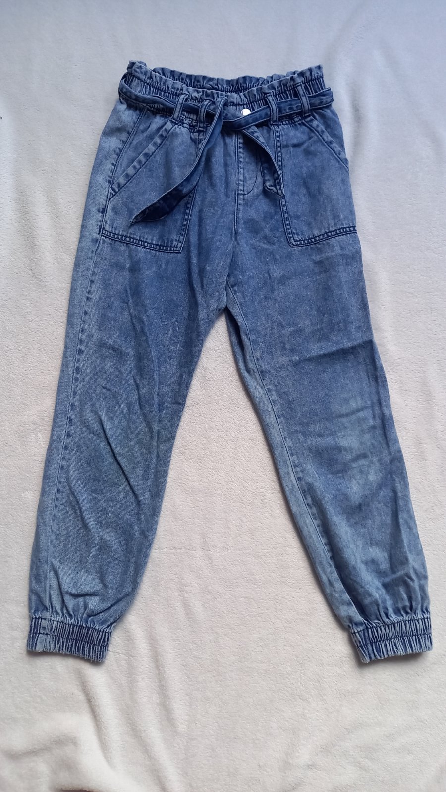 Džíny vel. 140 ,sepraný efekt, široké nohavice. Šířka pasu 62 cm, šířka boků 77 cm. Osobní odběr Praha 9 – metro Střížkov nebo přes Zásilkovnu (+ poštovné).