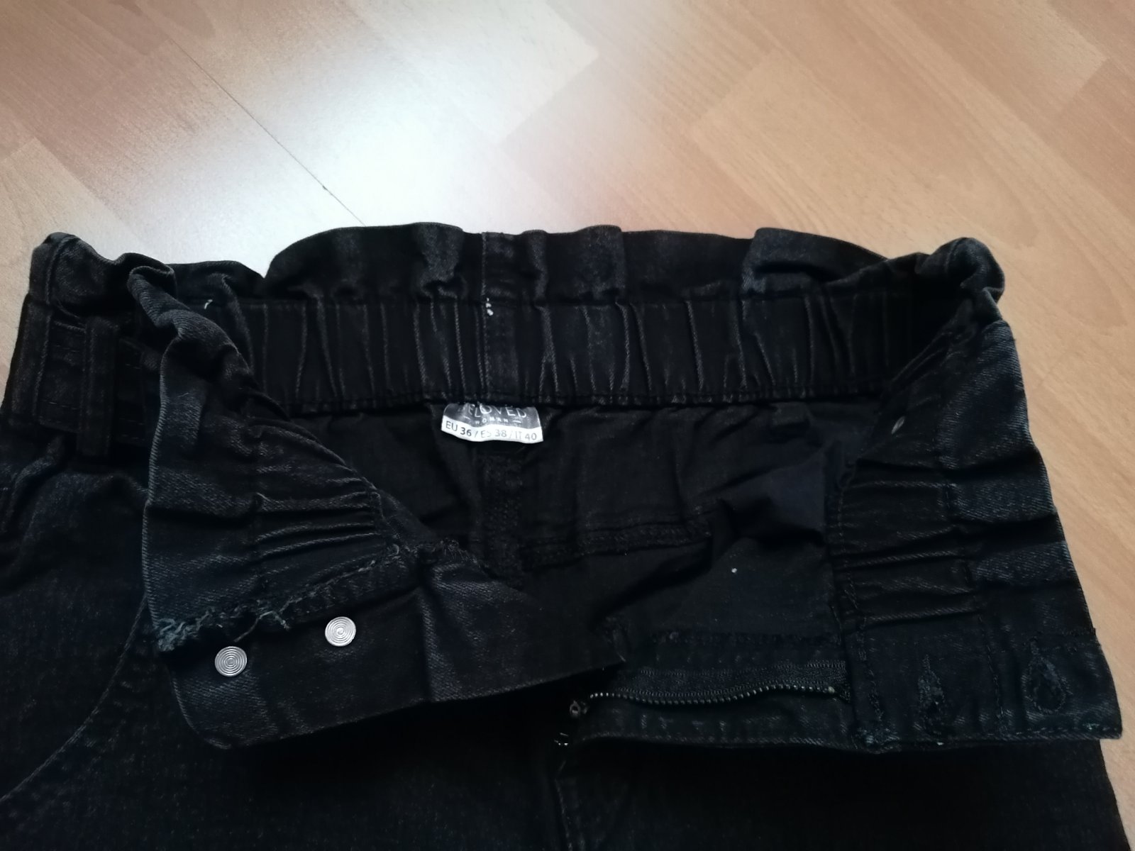 Pěkné černé elastické rifle, vel. 34-36