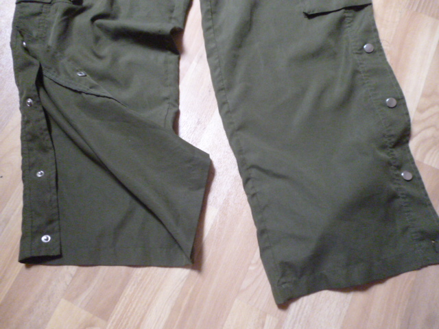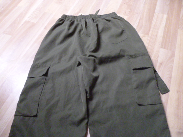 nošené málo, lehké, super i do přírody, délka je 104 cm, pas od 2x34-52 cm, přední sed 30 cm, nohavice u rozkroku 2x37 cm, nevidim vel. měřte