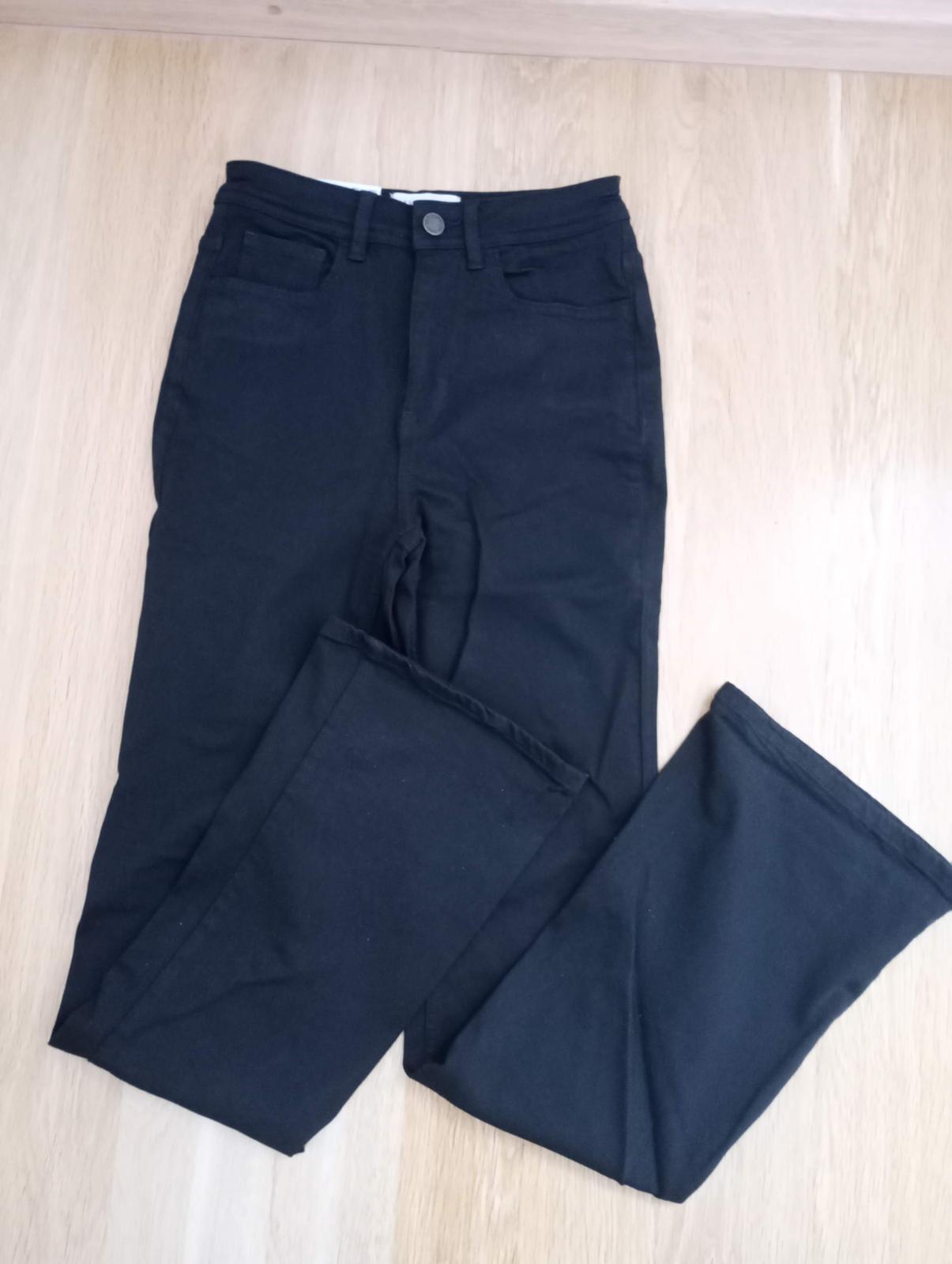 vyšší pas zapínání na zip a knoflík 2+2 kapsy poutka na pásek Perfektní stav, jako nové! Rozměry: šířka: 37 cm délka: 109 cm sed: 32 cm boky: 46 cm