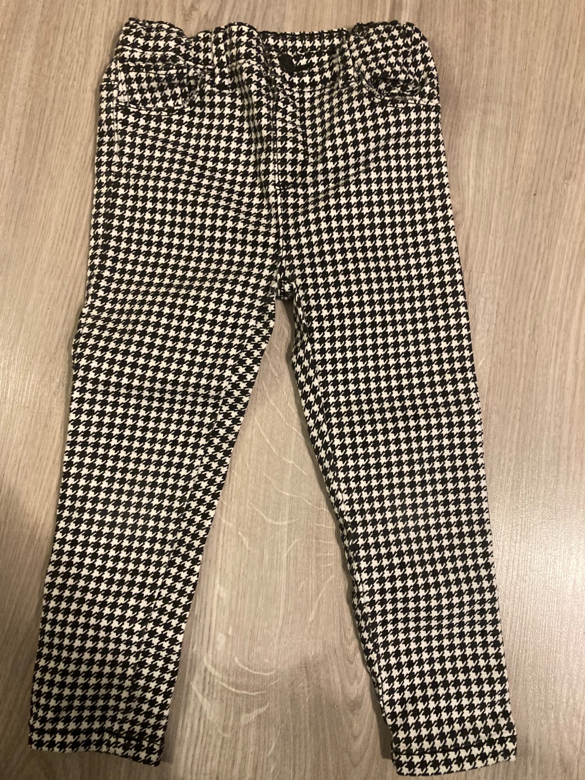 Kalhoty značky SoCute ve velikosti 98. 98% bavlna a2% elastan, vyrobeno v Bangladéši. V pase na gumu, šířku možné upravit pomocí gumiček.