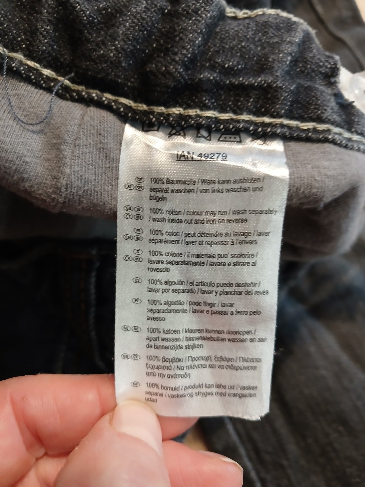 tmavě šedé až skoro černé byly synovy oblíbené a je to na nich znát - světlejší kolena, chybí knoflík na kapse a na stahovacím řemínku mezi kapsama odřené, nohavice ok cd 74, v pase regulace max 2x...