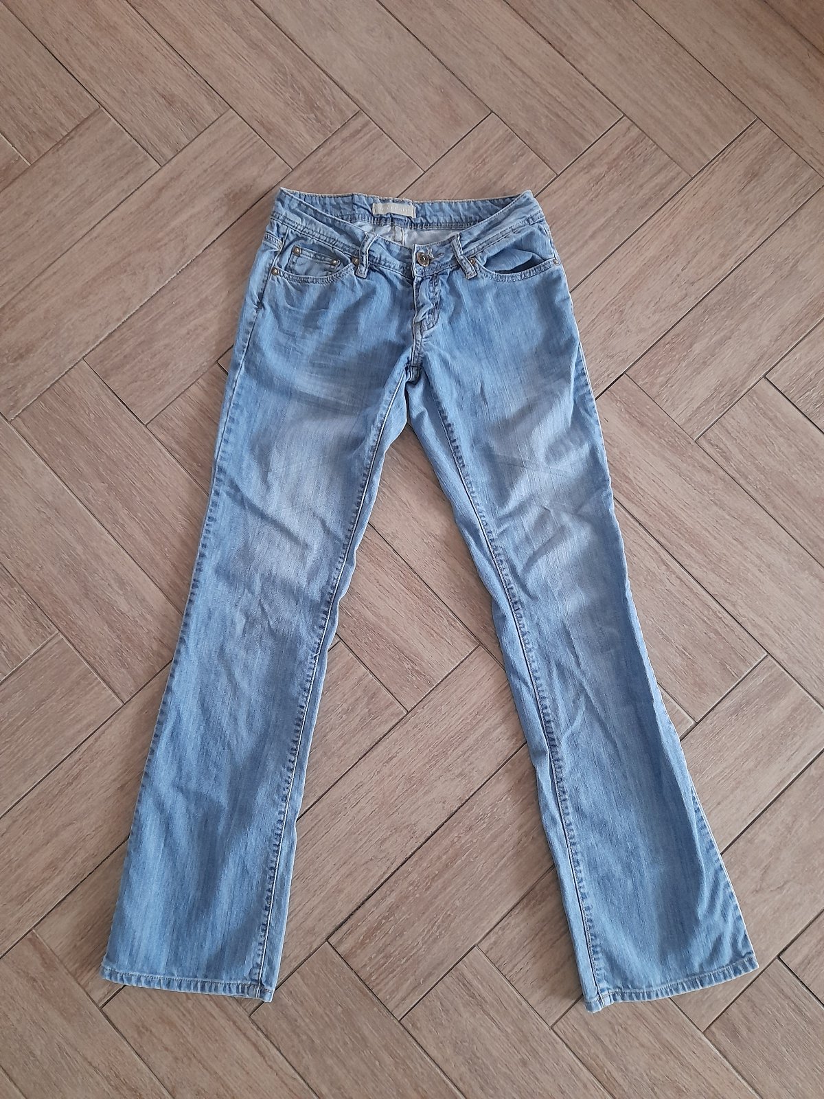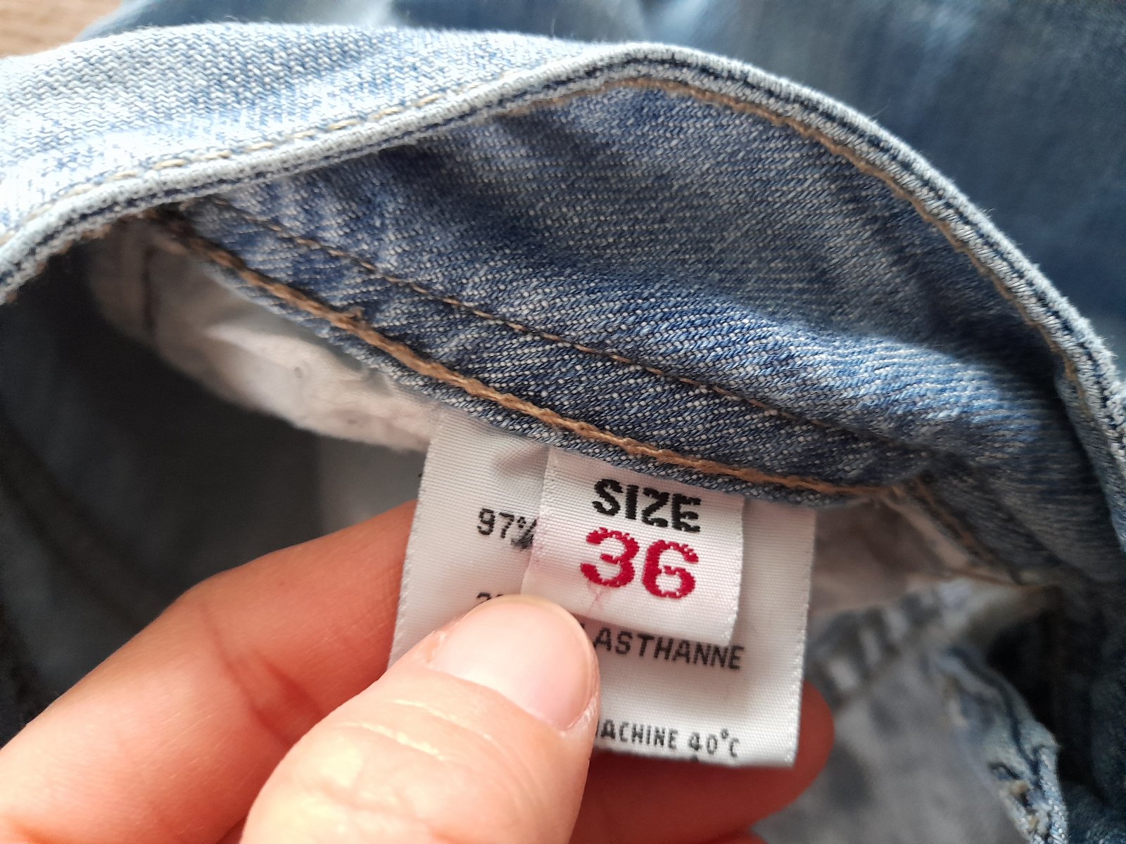 Světle modré rifle, vel. 36, rozměry viz foto.