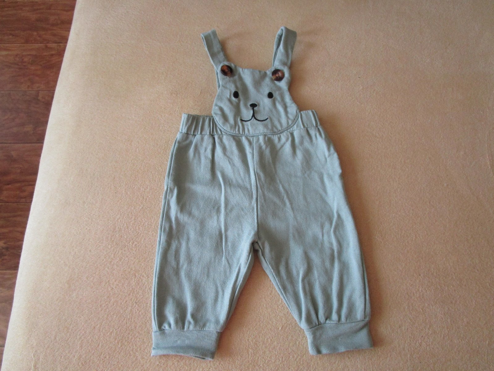 Pěkné zelené bavl. kalhoty s laclem, vel. 3-6 měsíců, cena jen 39 Kč.