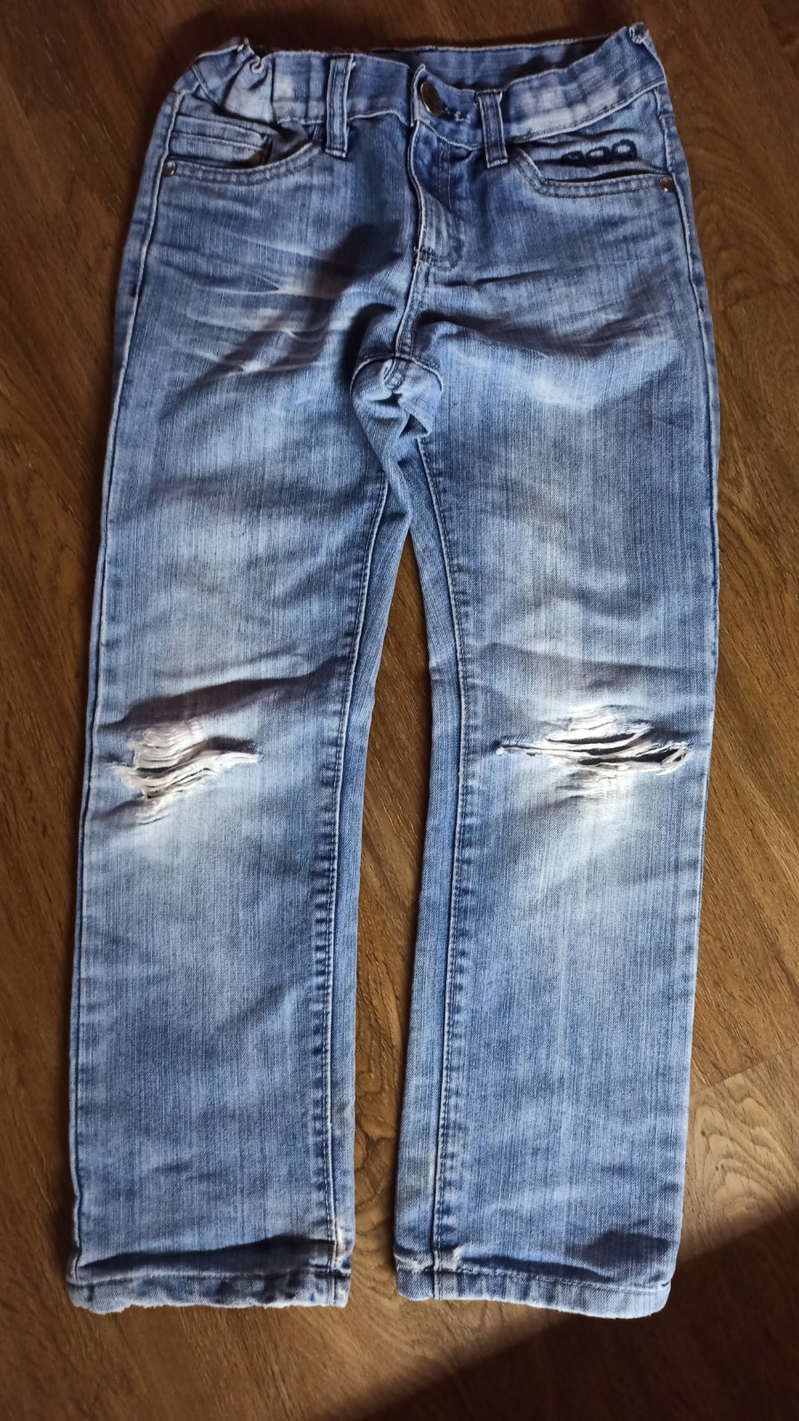 Krásné frajerske cool džíny Kik vel 140 ale vydrží i déle v pase regulace trhání na kolenou vypadají soper naše oblíbené