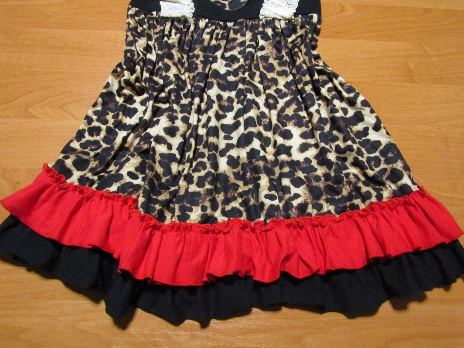 Šatičky na 5-6 let,na zádech kolem suchého zipu pár žmolků,na tmavé látce není skoro vidět.Vepředu byla asi ozdoba,ta je utržená,jsou tam 2 dírky, půjdou zašít.