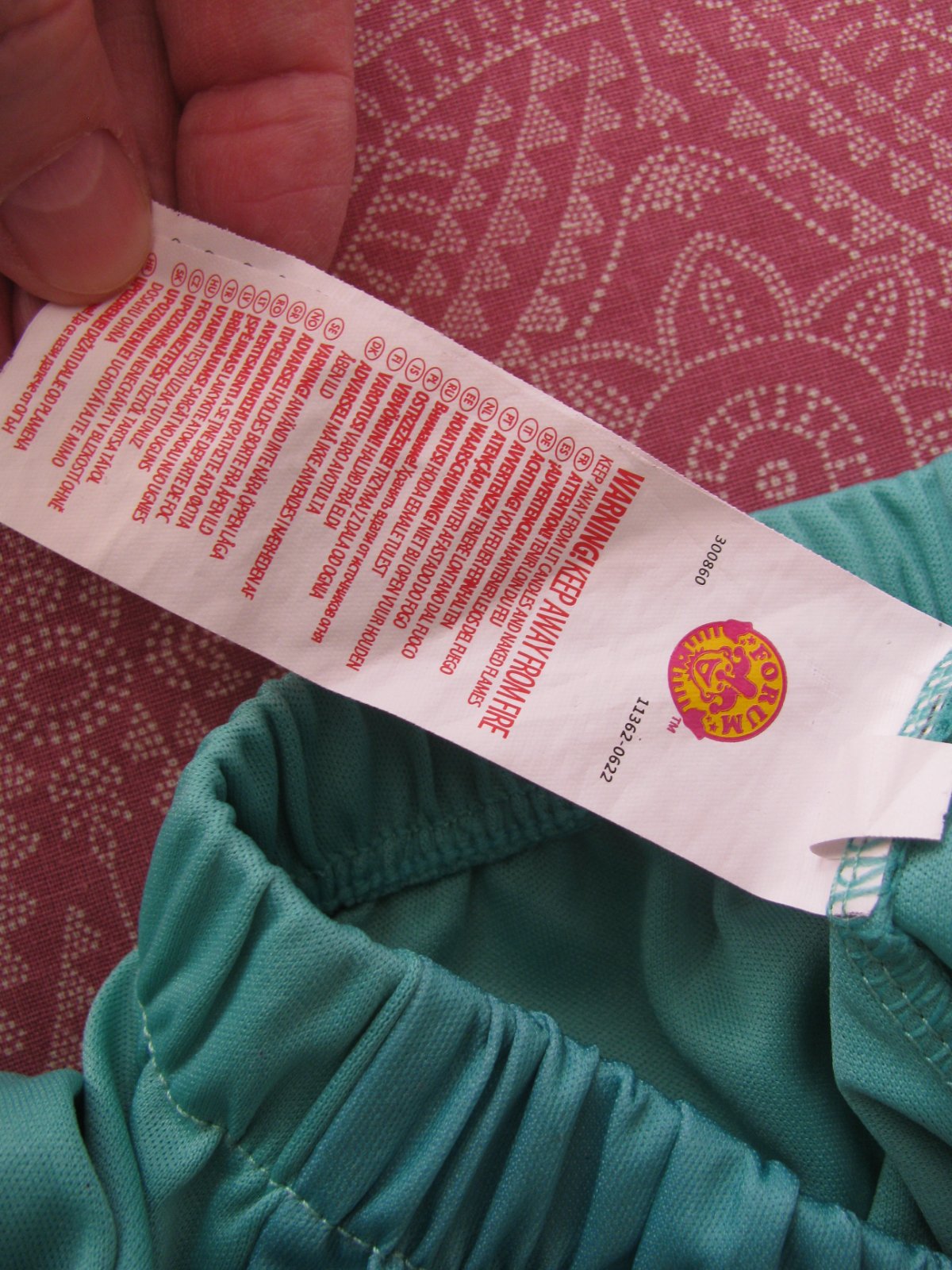 Hezký elastický kostým, dvoudílný, halena a kalhoty. 100% polyester. Na kalhotech u průstřihů pár ažurek, jinak krásný stav bez jiných vad. Kalhoty jsou vel.L, je to dětské číslování, měly by sedět na vel. 152.