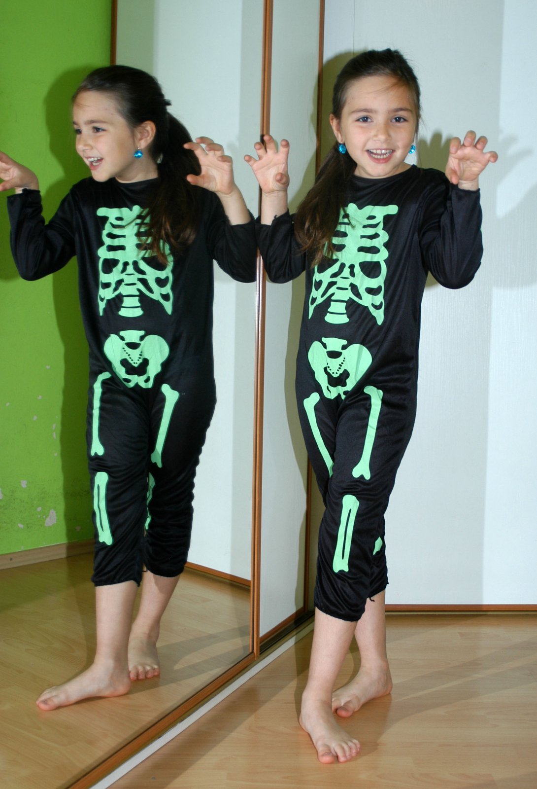 Karnevalový kostým kostlivec i na Halloween, má zapínání vzadu u krku na suchý zip, vel. 4-6 let